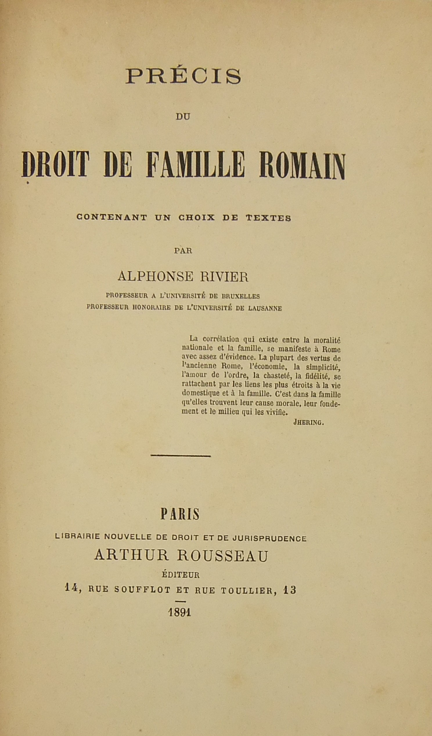 Precis du droit de famille romain. Contenant un choix de textes