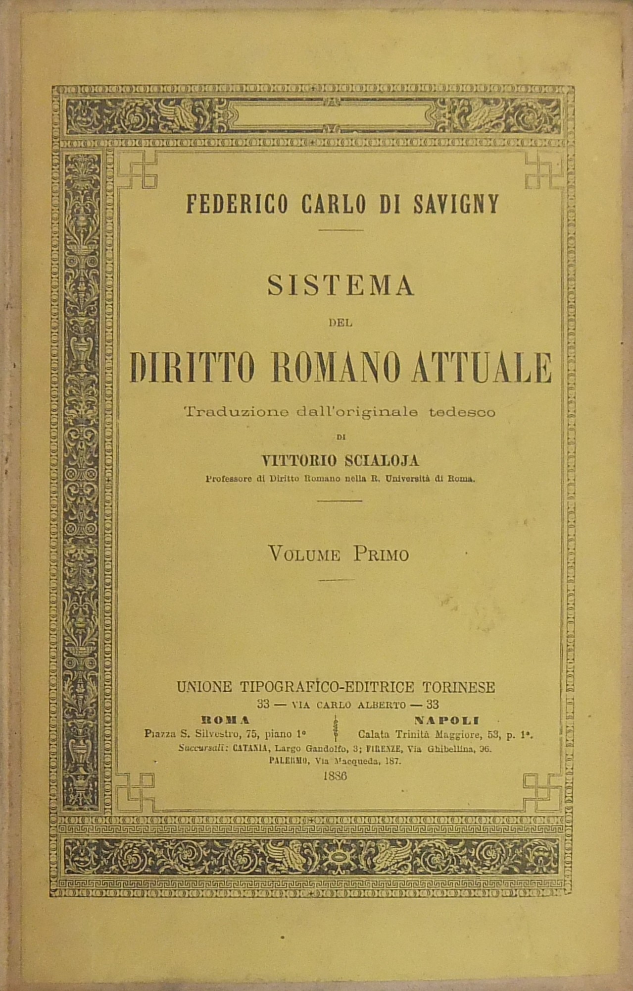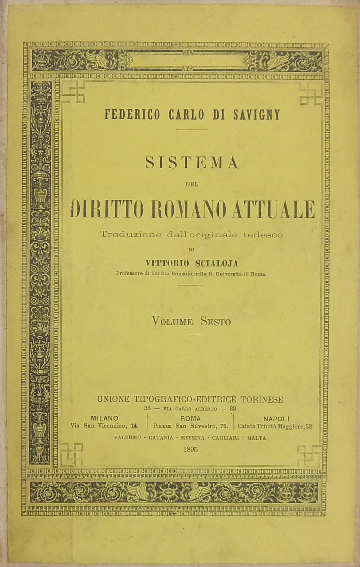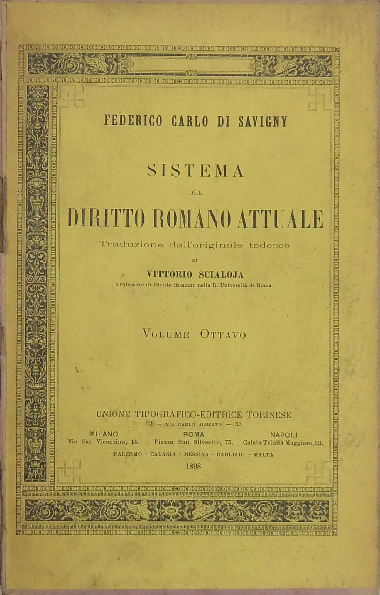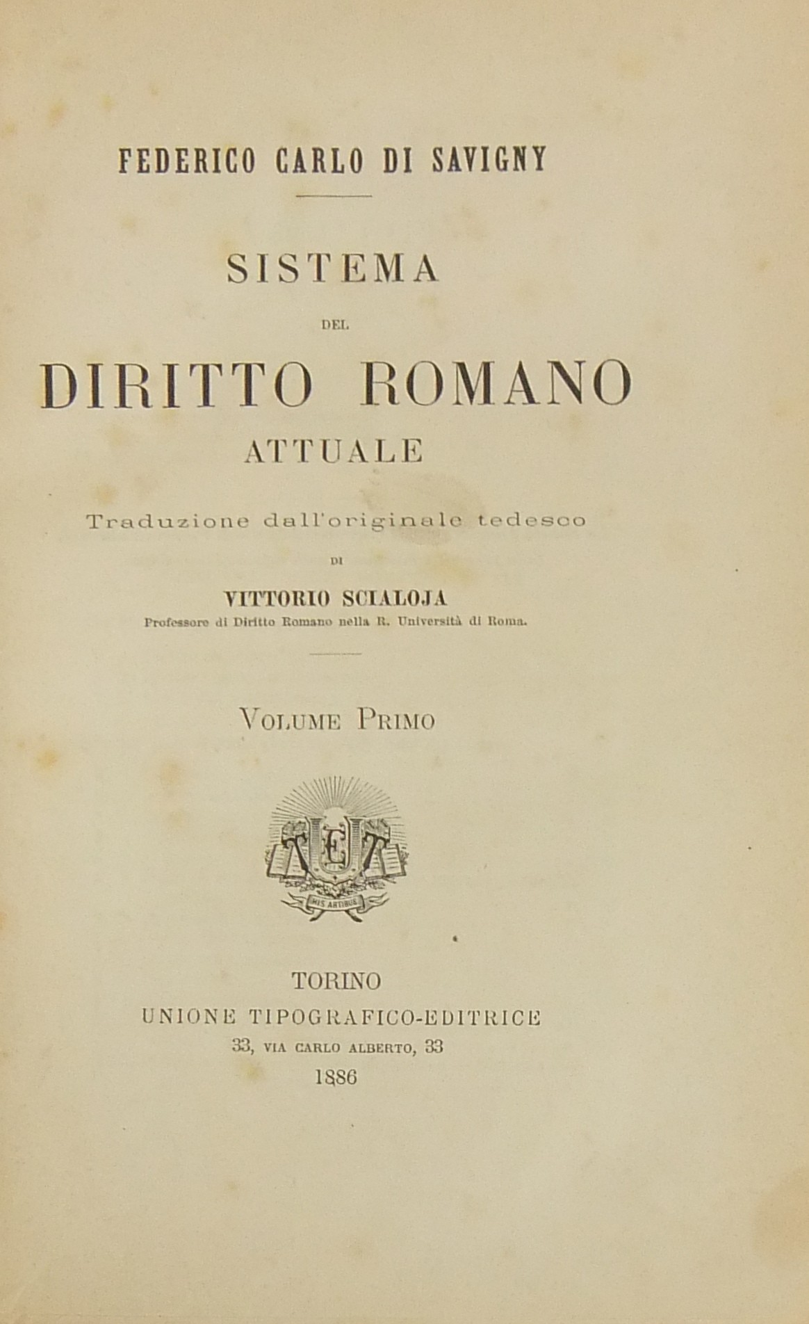 Sistema del diritto romano attuale. Traduzione dall'originale tedesco di Vittorio Scialoja