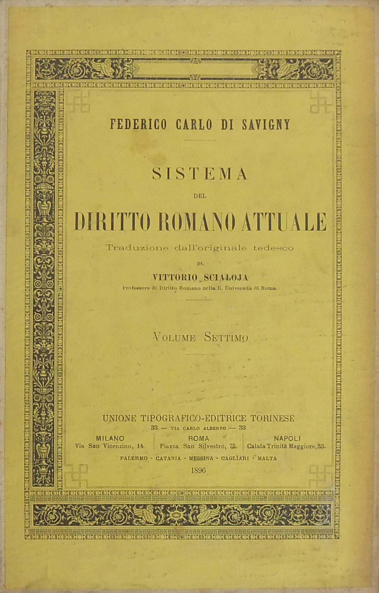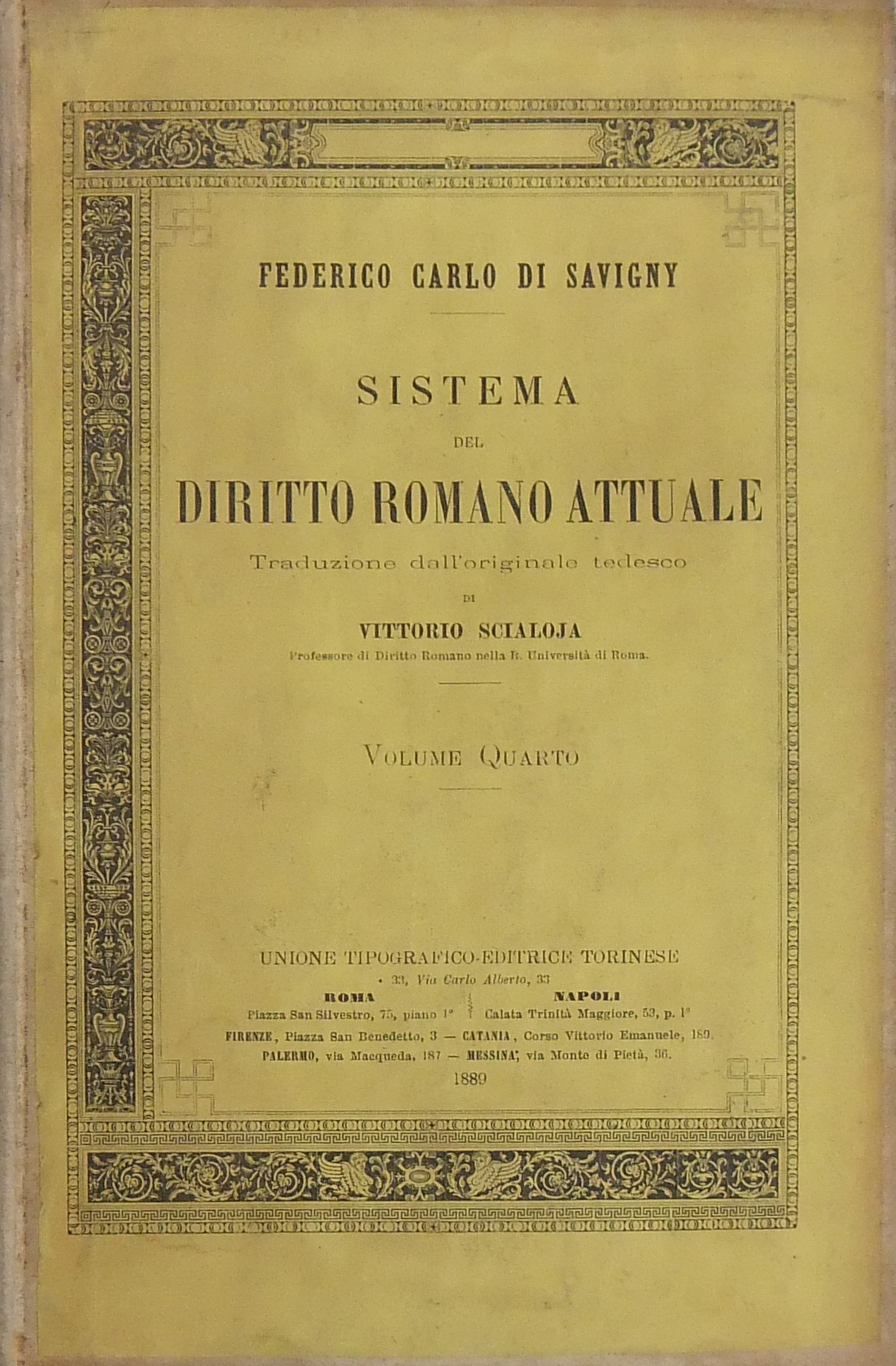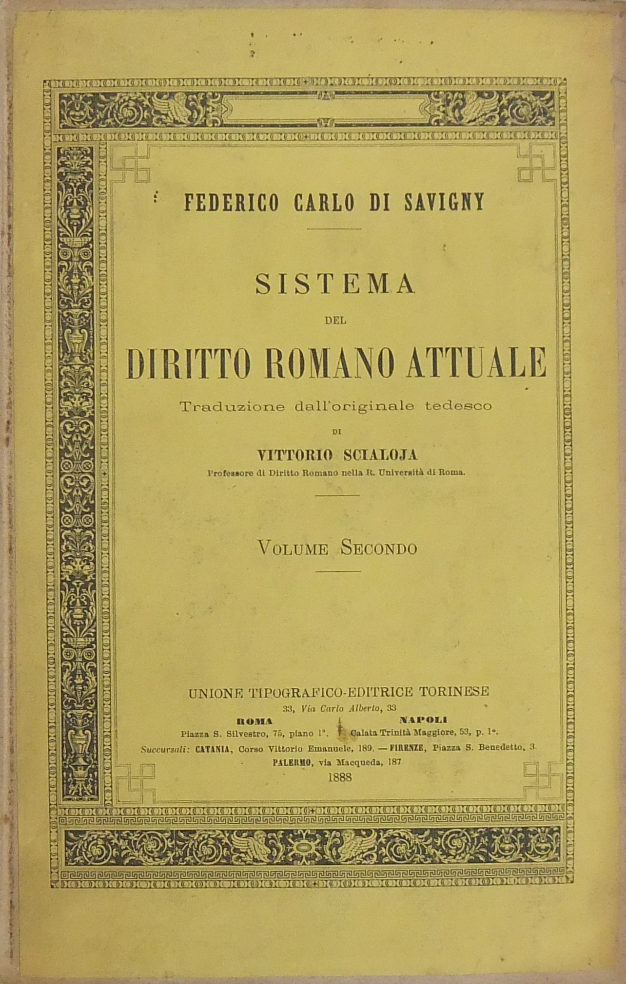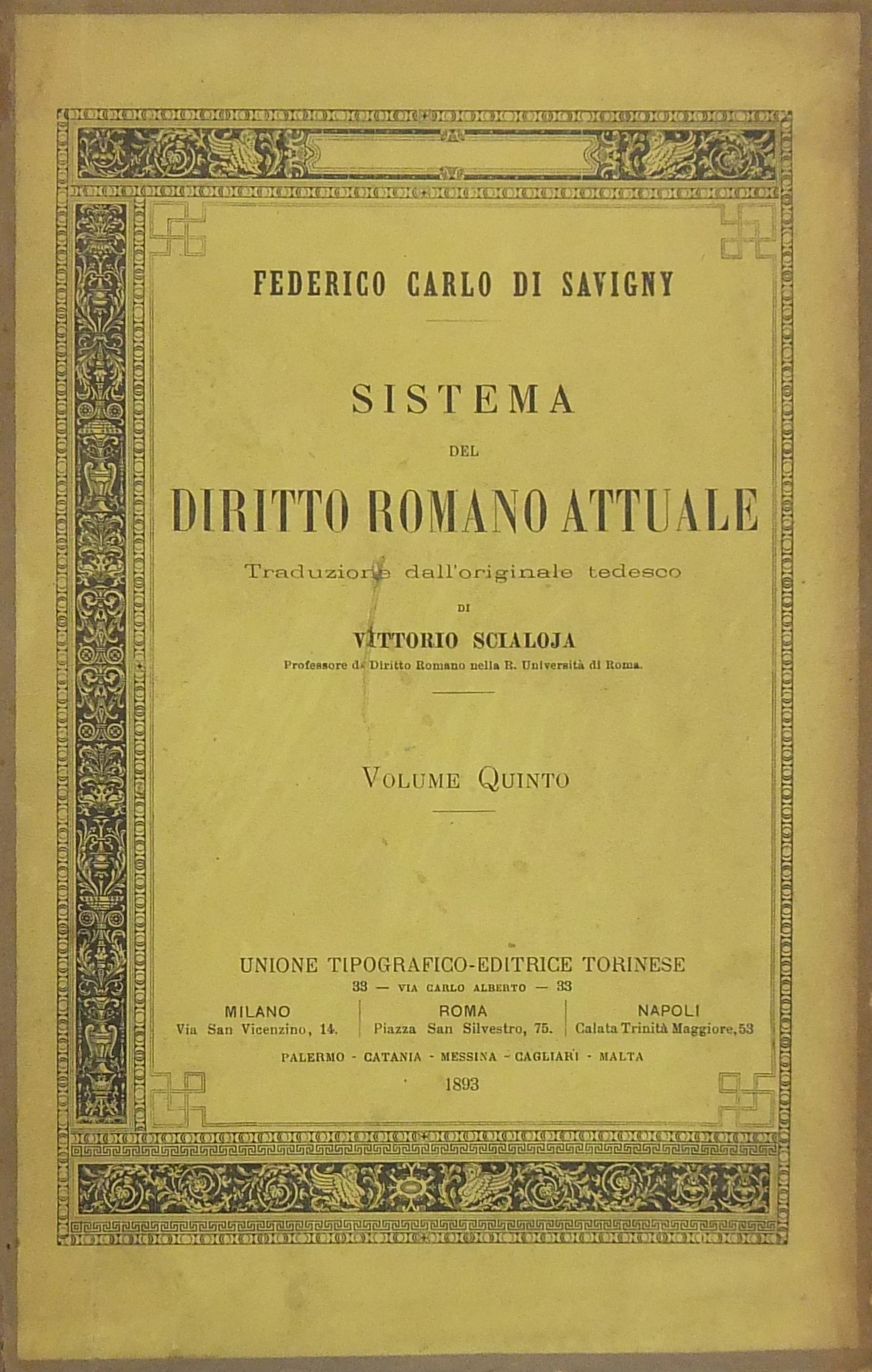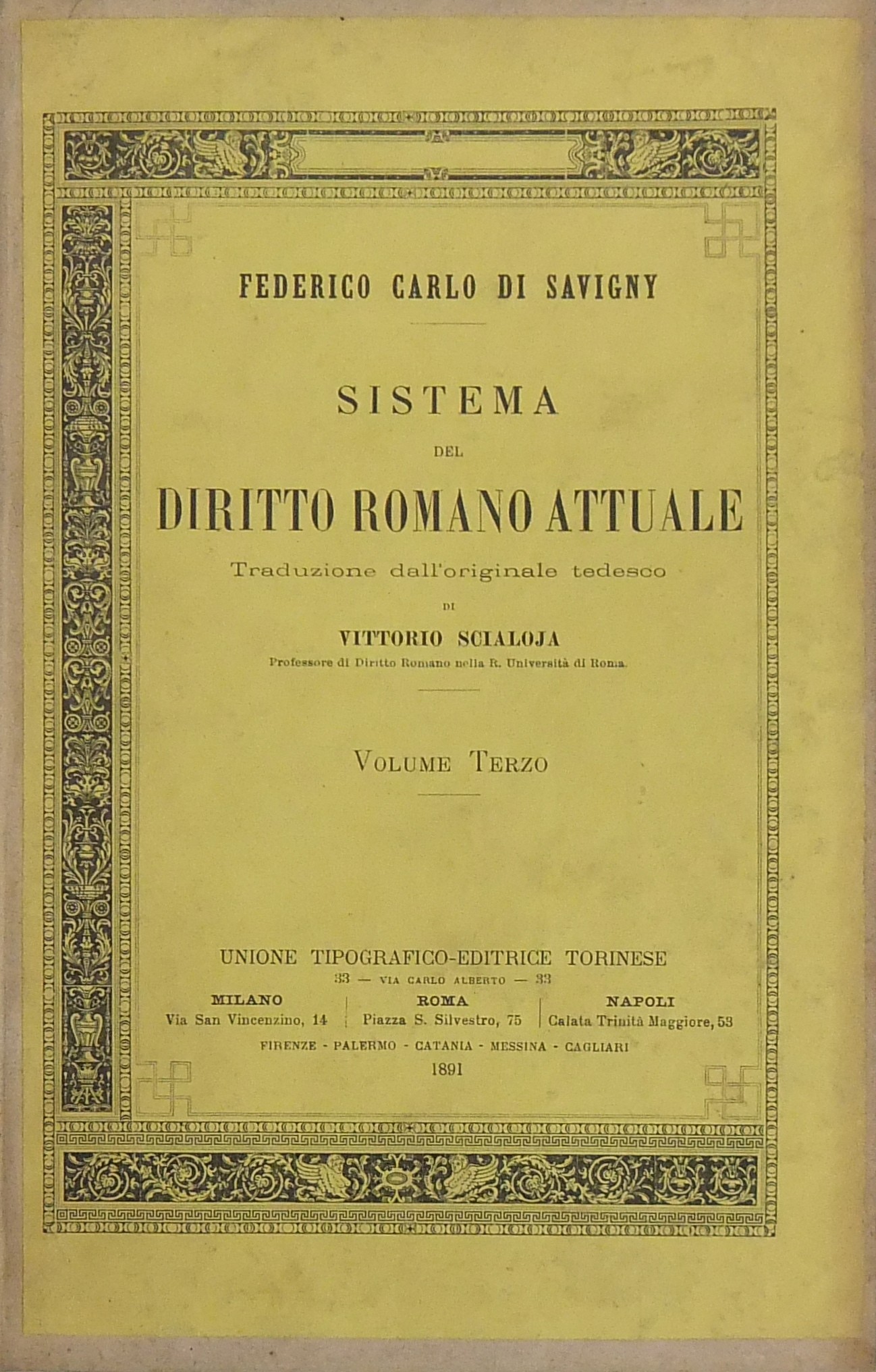 Sistema del diritto romano attuale. Traduzione dall'originale tedesco di Vittorio Scialoja