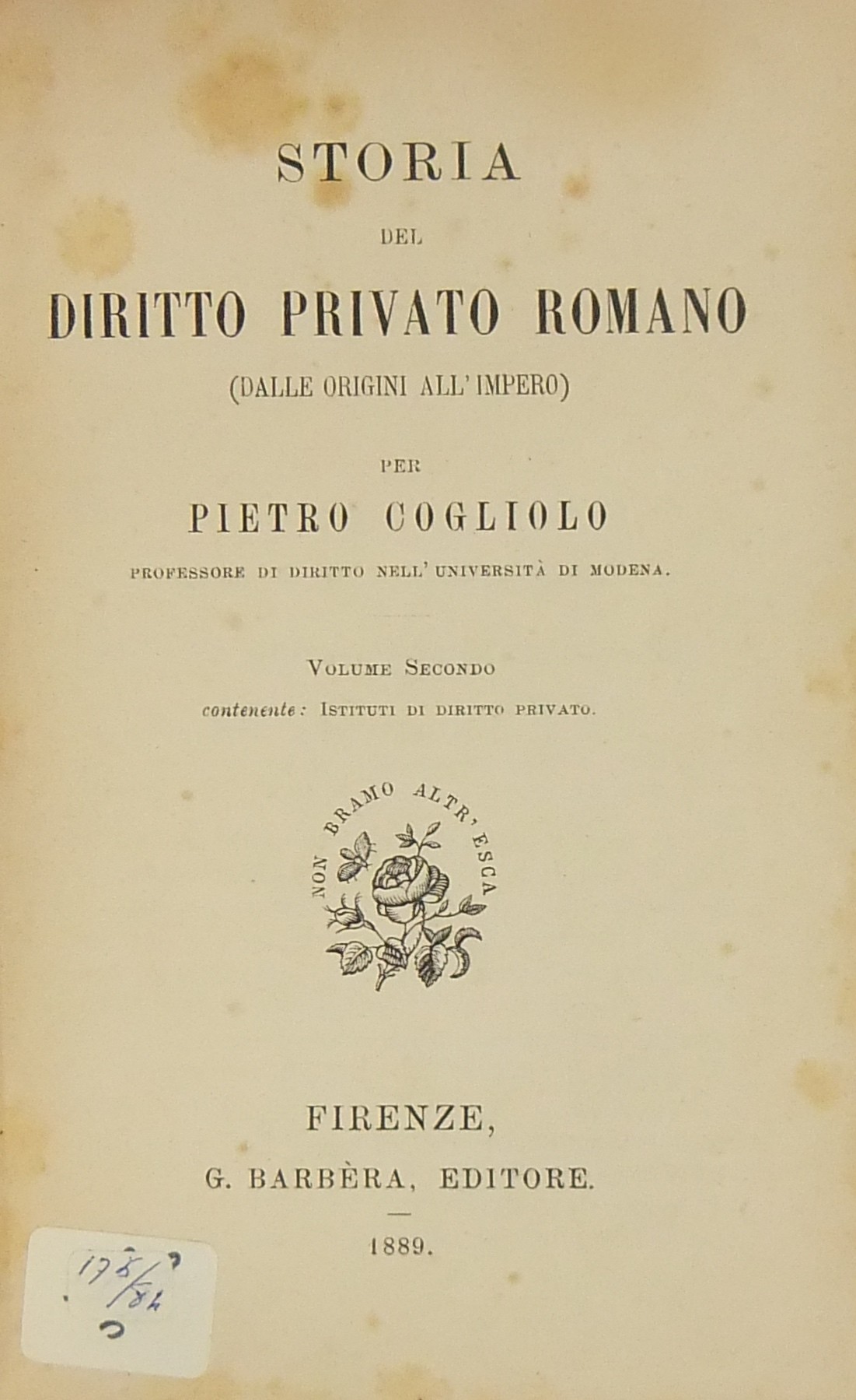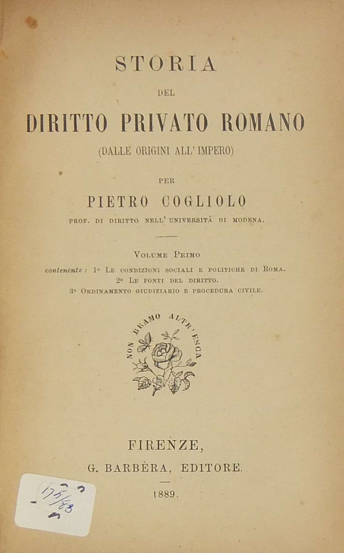 Storia del diritto privato romano (dalle origini all'Impero). Vol. I - Le condizioni sociali e politiche di Roma. Le fonti del diritto. Ordinamento giudiziario e procedura civile. Vol. II - Istituti di diritto privato