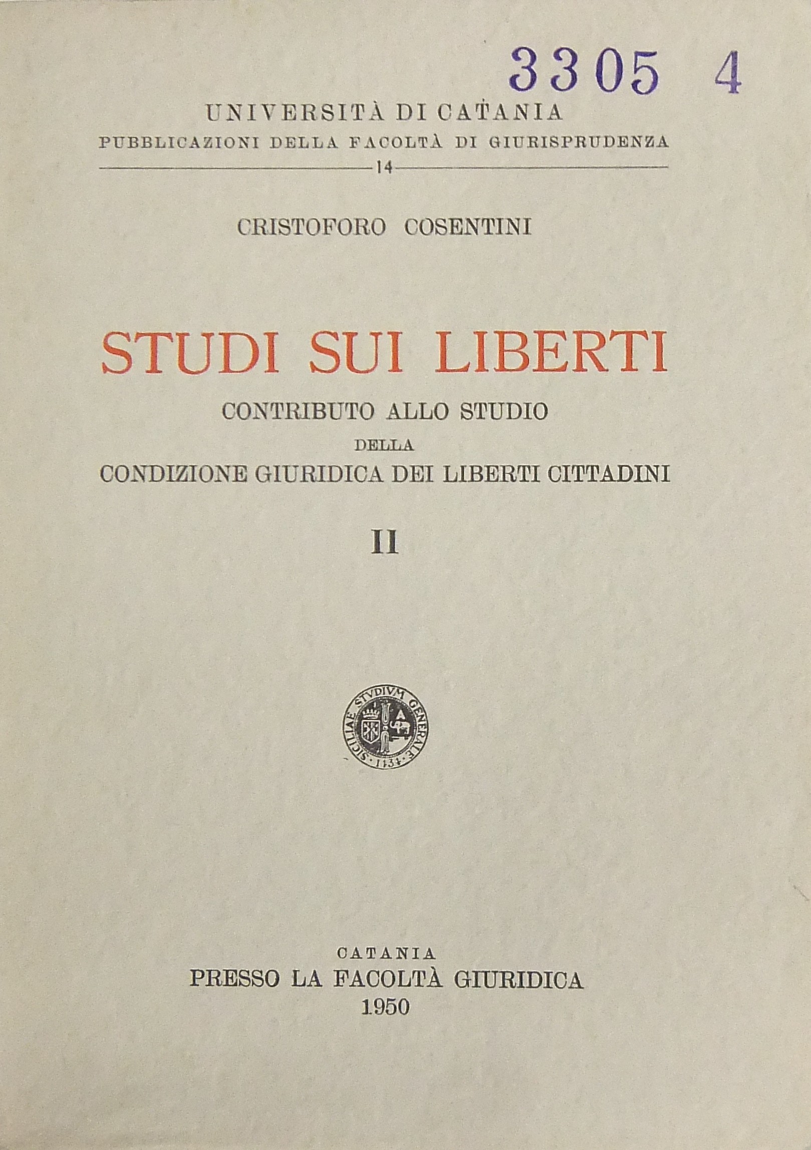 Collana: Pubblicazioni della Facoltà di Giurisprudenza della R. Università di Catania
