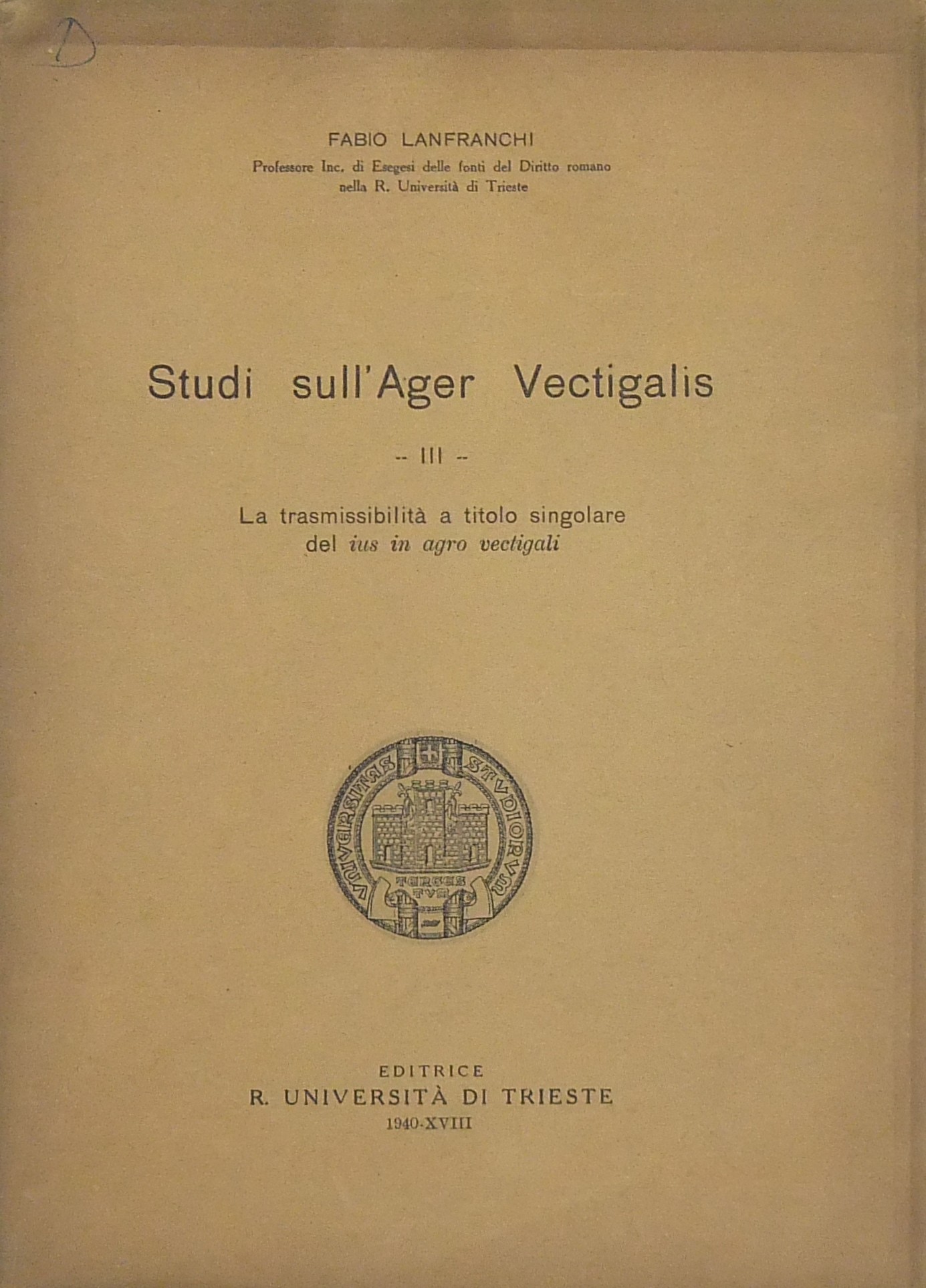 Studi sull'ager vectigalis. Vol. I - La classicità dell'actio in rem vectigalis. Vol. II - Il problema della usucapibilità degli agri vectigales. Vol. III - La trasmissibilità a titolo singolare del ius in agro vectigali