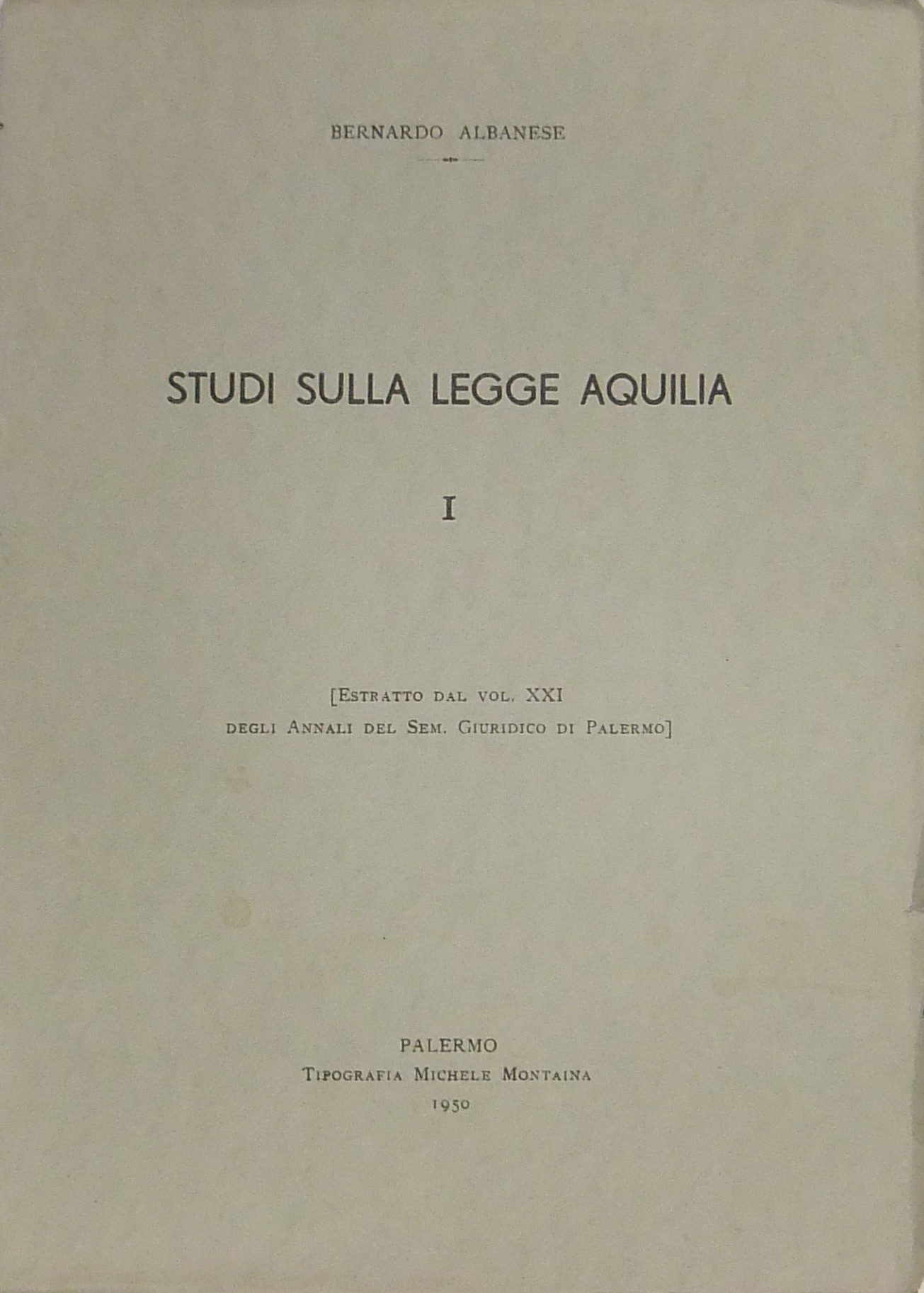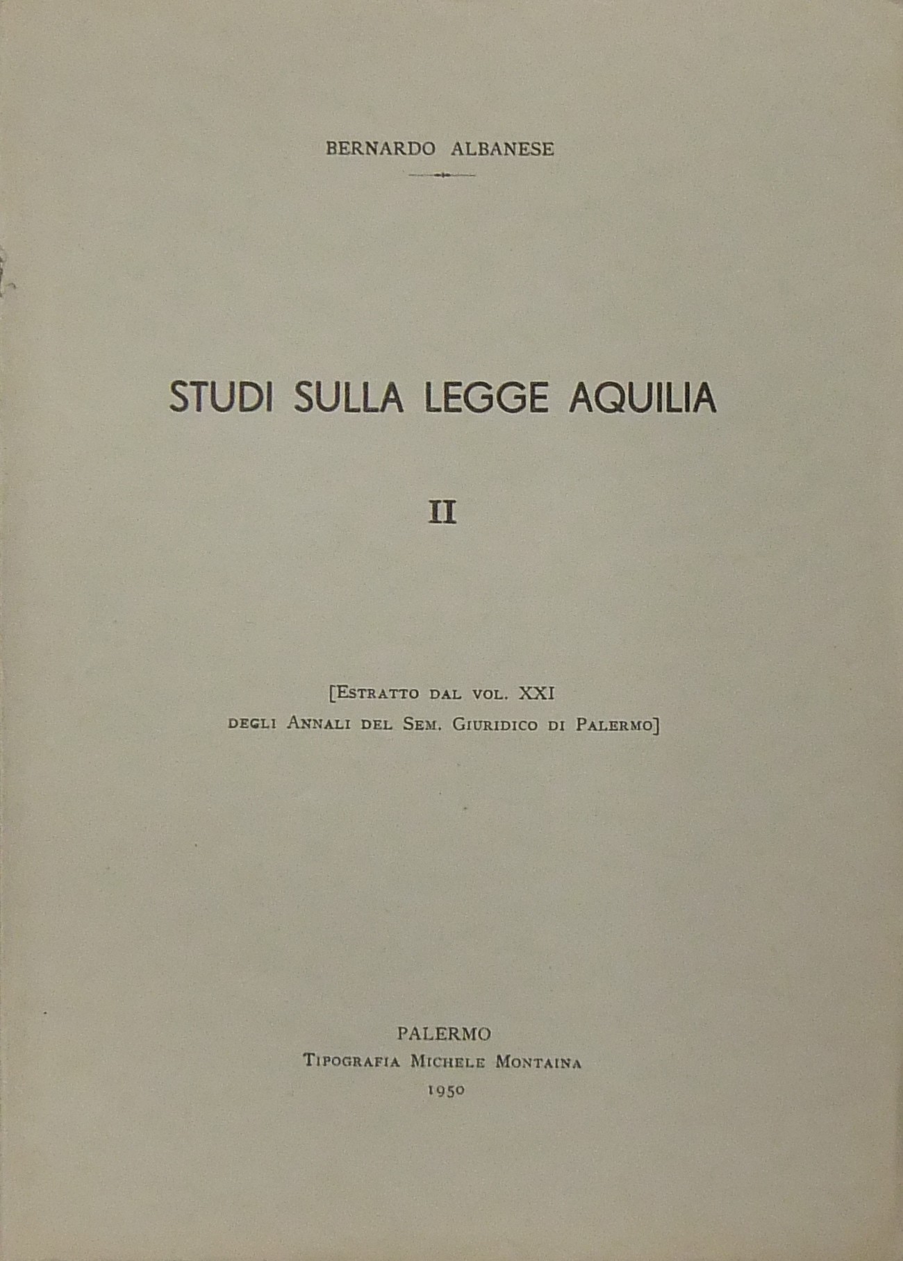 Studi sulla legge Aquilia. (Estratto dal vol. XXI degli Annali del Sem. Giuridico di Palermo)
