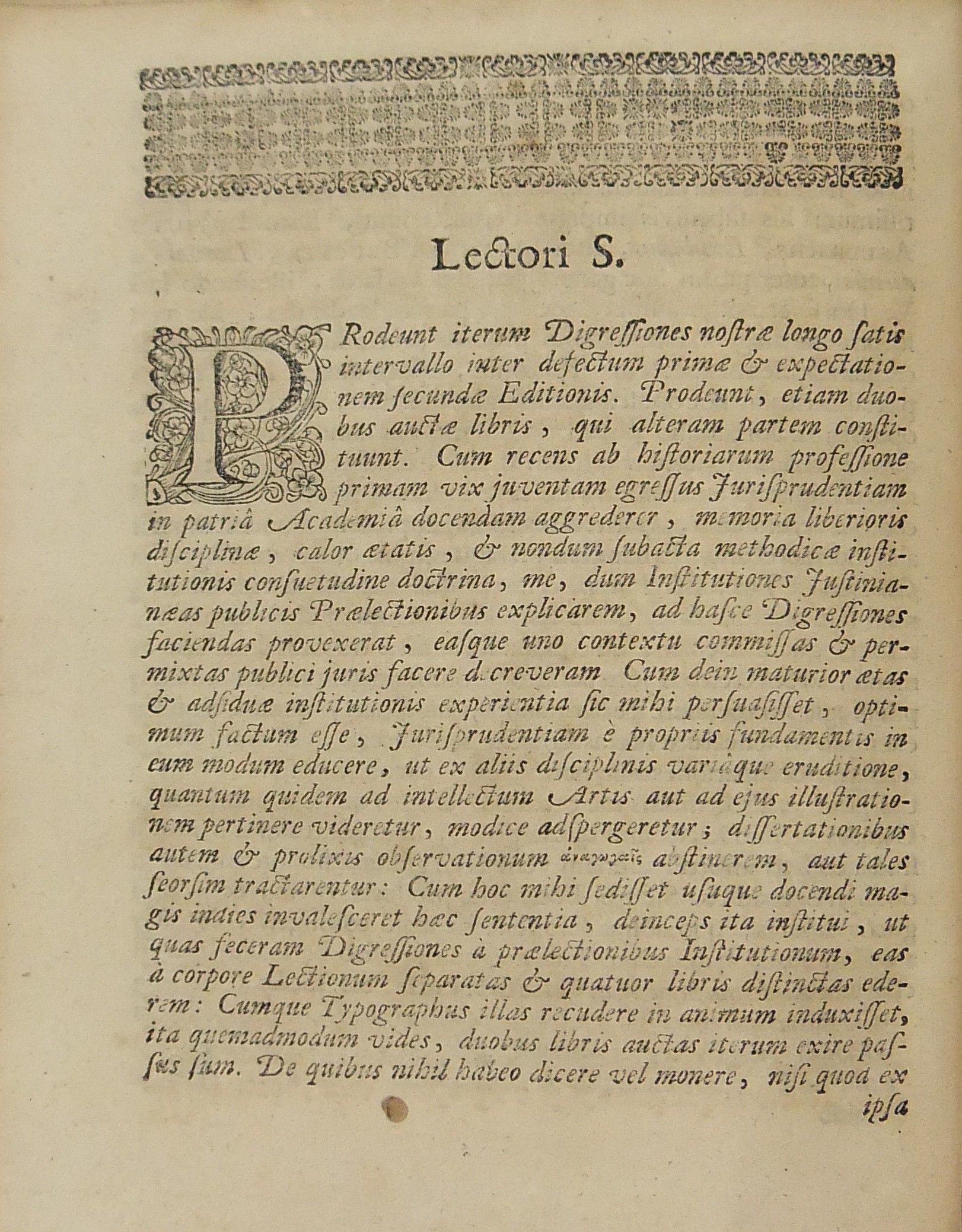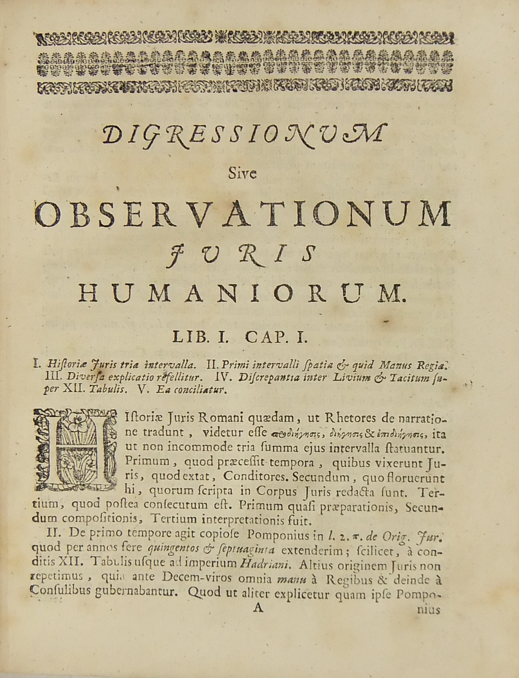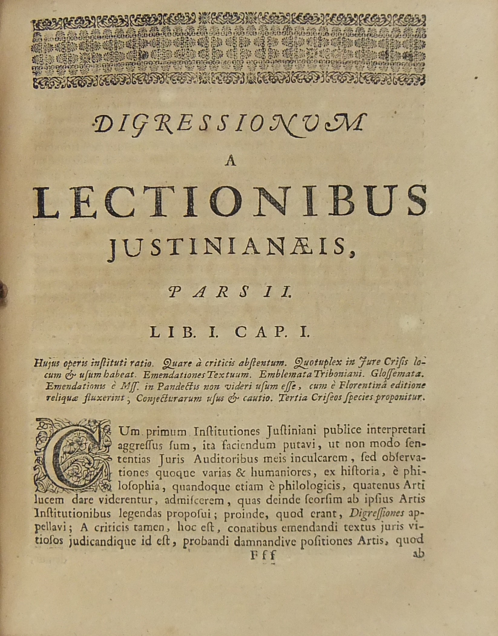 Digressiones Justinianeae in partes duas, quarum altera nova, distinctae: quibus Varia et in primis Humaniora Juris continentur. Insertus est De jure in re et ad rem quod dicitur, Tractatus, et adiecta De Ratione discendi atque docendi Juris Diatribe, per modum Dialogi