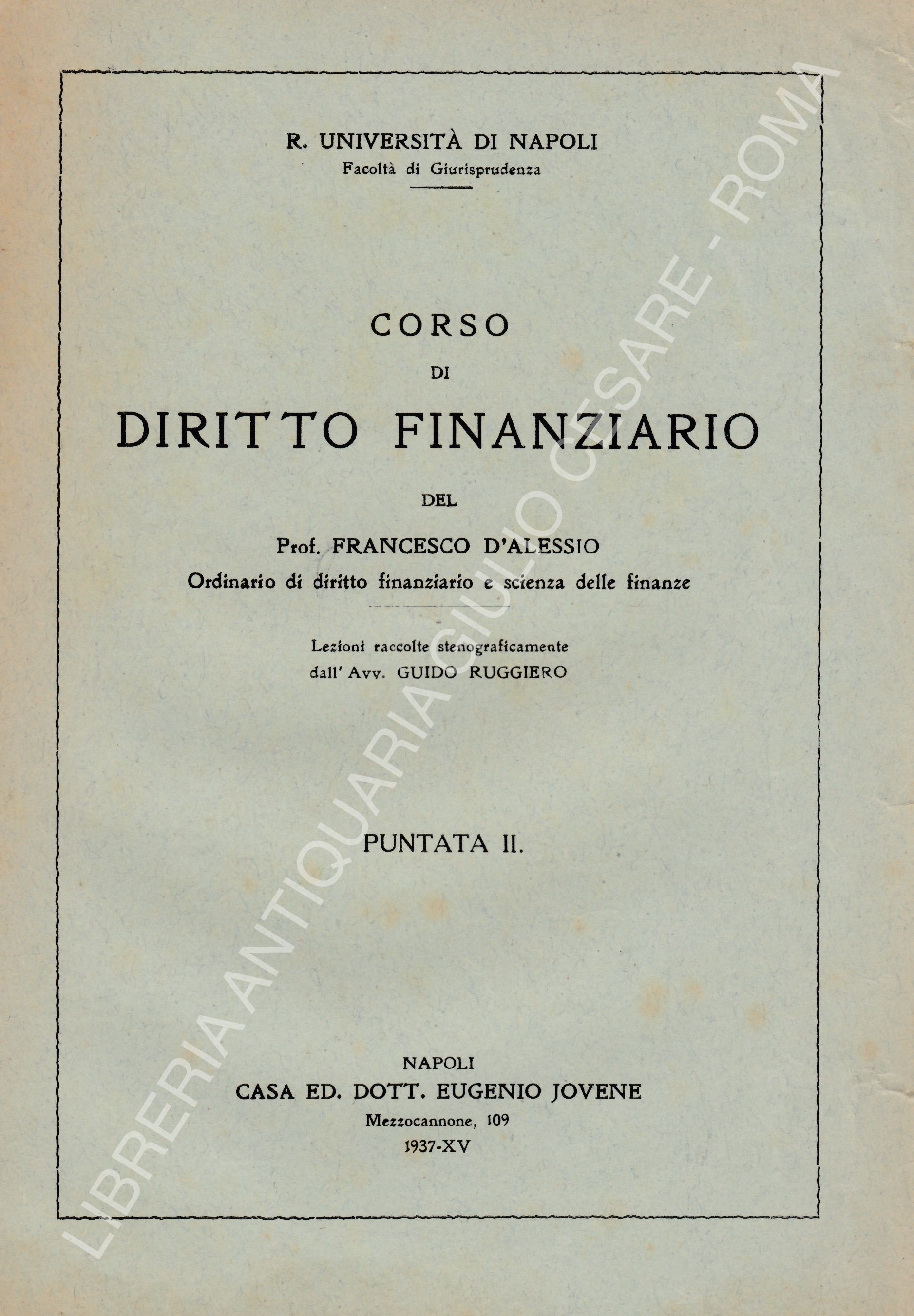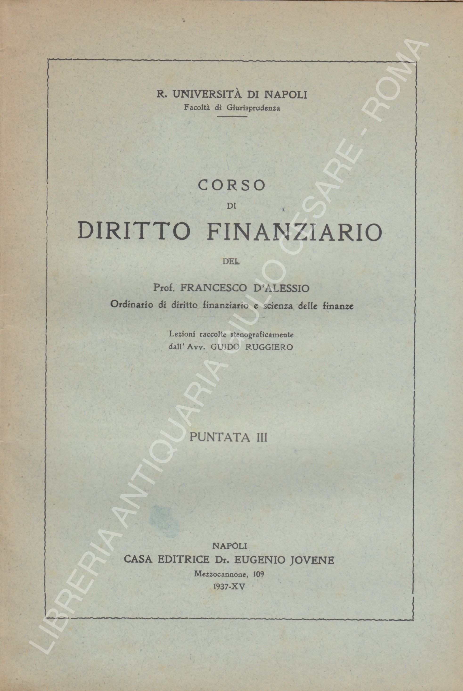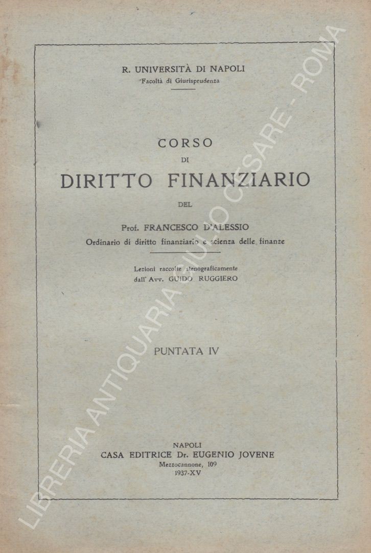 Corso di diritto finanziario. Lezioni raccolte stenograficamente dall'Avv. Guido Ruggiero
