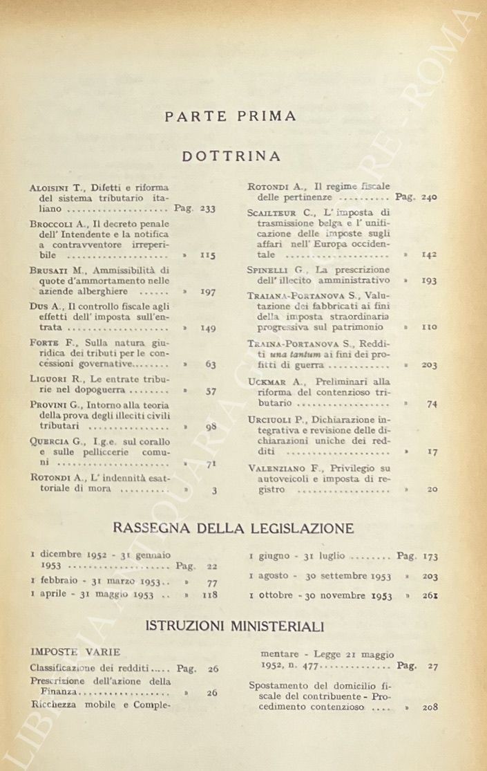 Diritto e Pratica Tributaria. Diretta da Victor Uckmar. Vol. XXIV - 1953