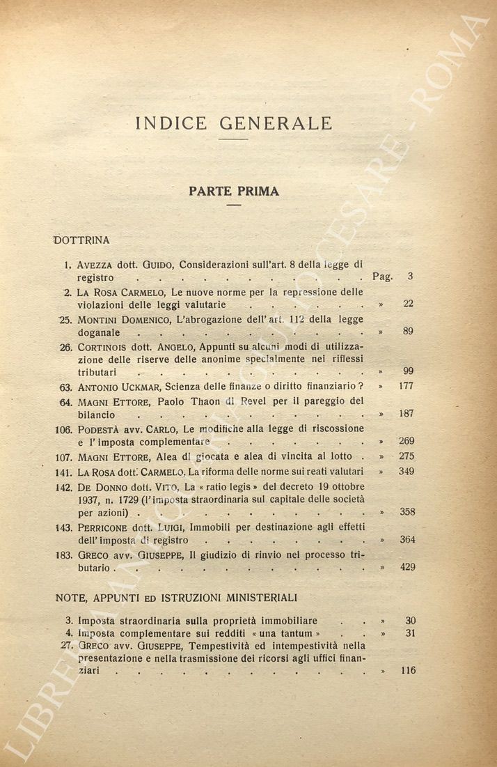 Diritto e Pratica Tributaria. Diretta da Victor Uckmar. Vol. XIV - 1939