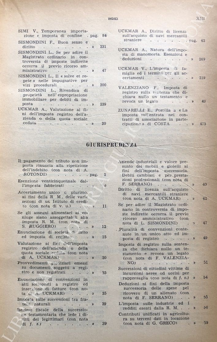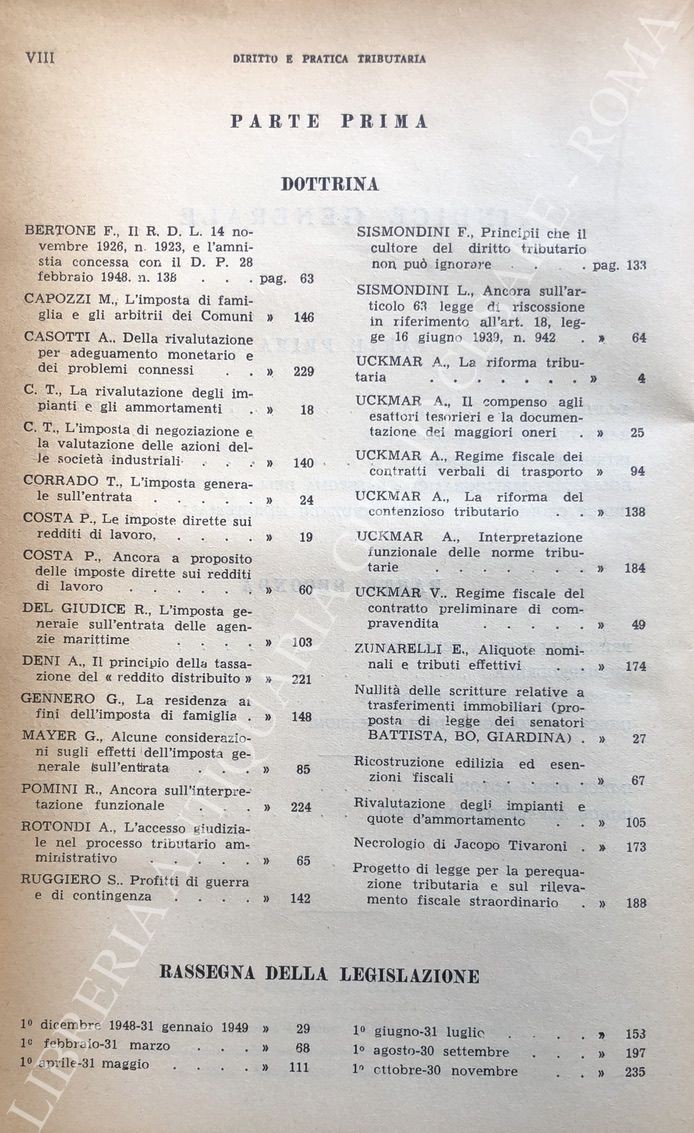 Diritto e Pratica Tributaria. Diretta da Victor Uckmar. Vol. XX - 1949
