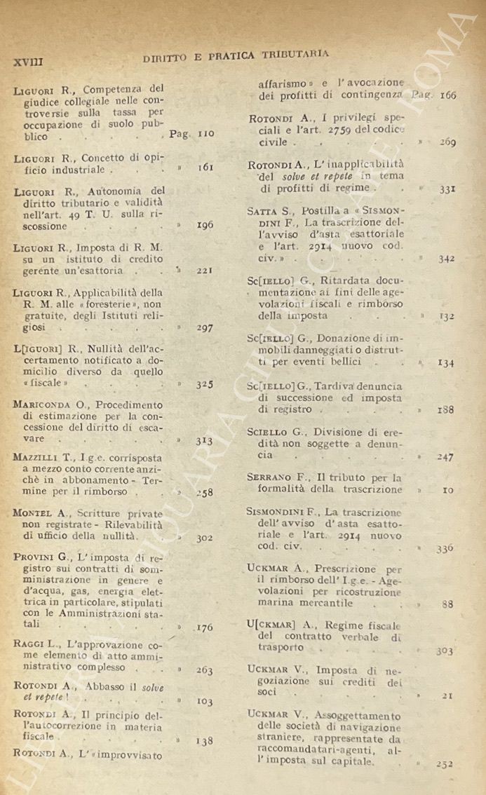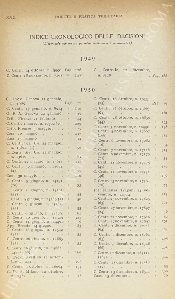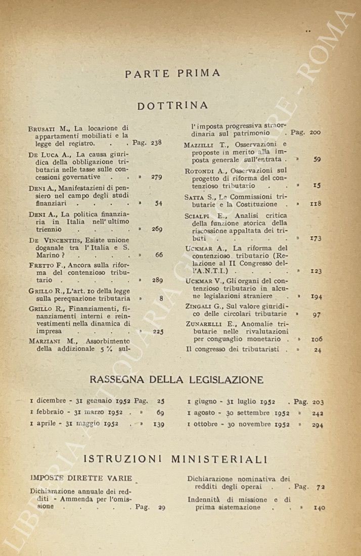 Diritto e Pratica Tributaria. Diretta da Victor Uckmar. Vol. XXIII - 1952