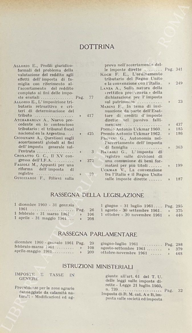 Diritto e Pratica Tributaria. Diretta da Victor Uckmar. Vol. XXXII - 1961