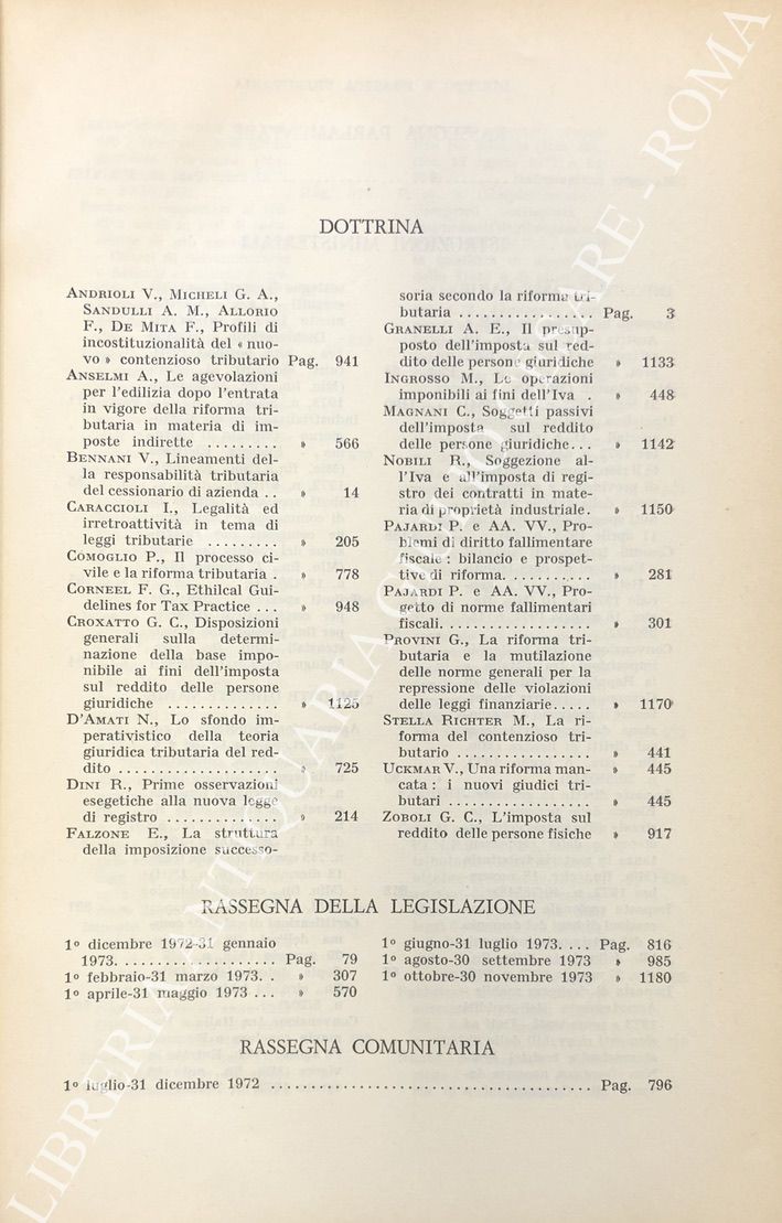 Diritto e Pratica Tributaria. Diretta da Victor Uckmar. Vol. XLIV - 1973