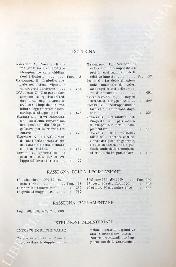 Diritto e Pratica Tributaria. Diretta da Victor Uckmar. Vol. XLI - 1970