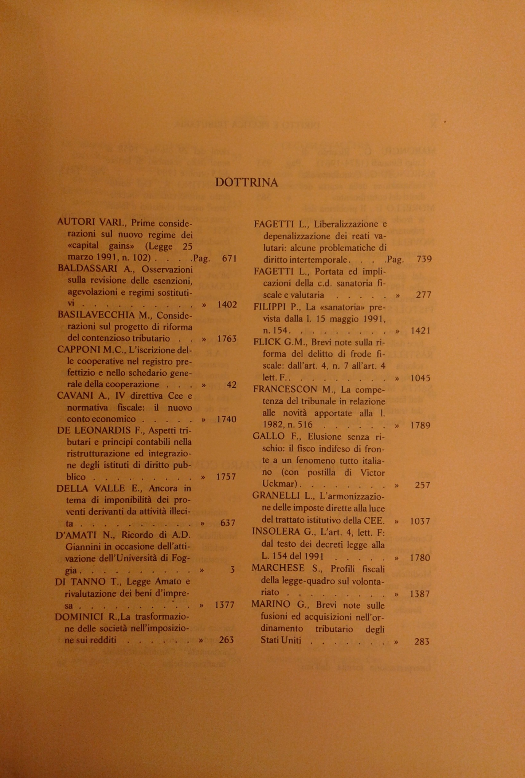 Diritto e Pratica Tributaria. Diretta da Victor Uckmar. Vol. LXII - 1991
