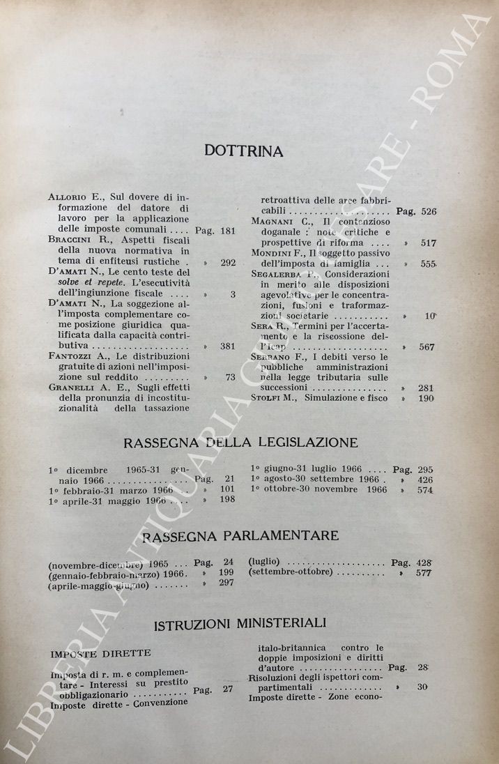 Diritto e Pratica Tributaria. Diretta da Victor Uckmar. Vol. XXXVII - 1966