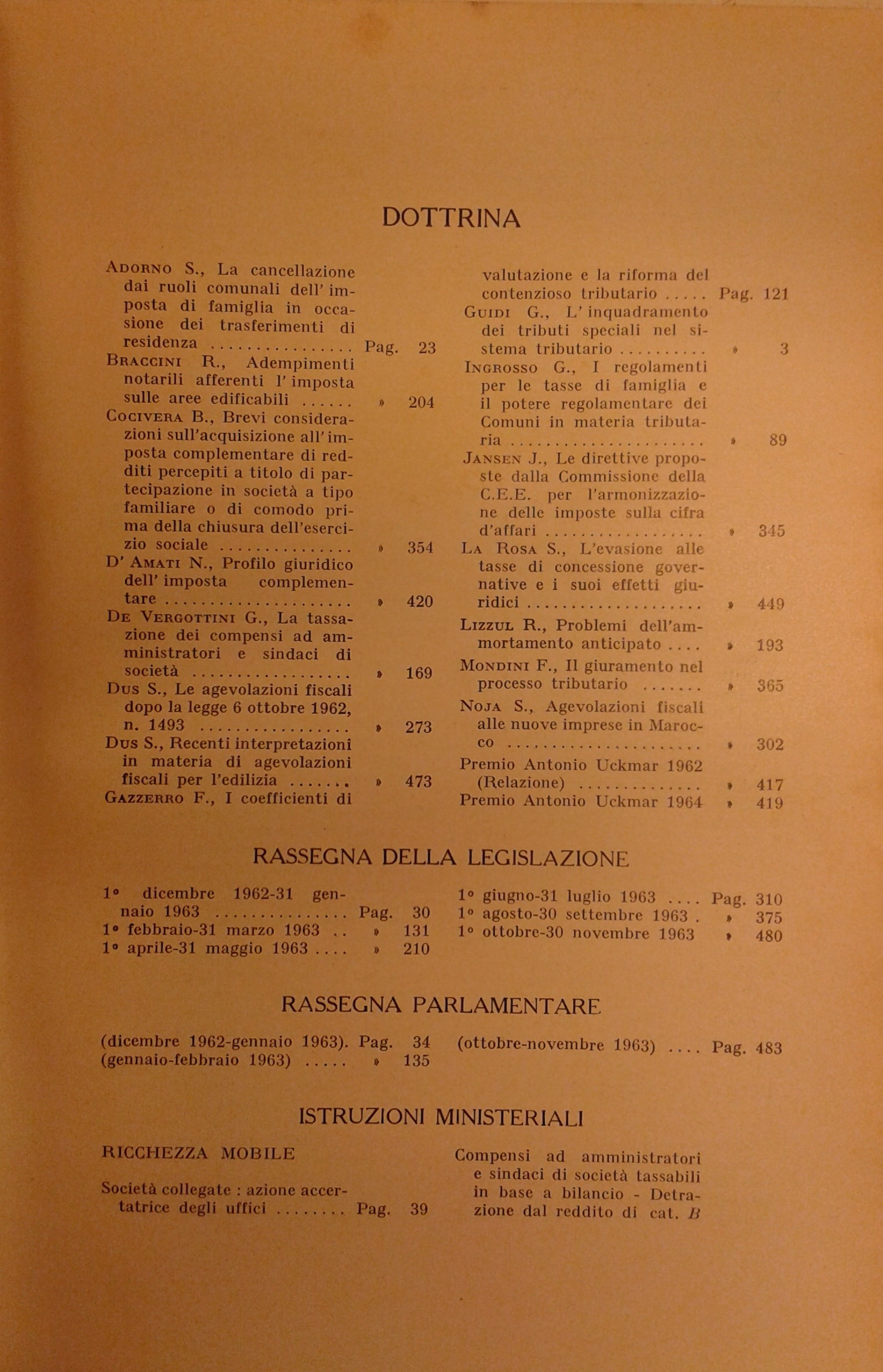 Diritto e Pratica Tributaria. Diretta da Victor Uckmar. Vol. XXXIV - 1963