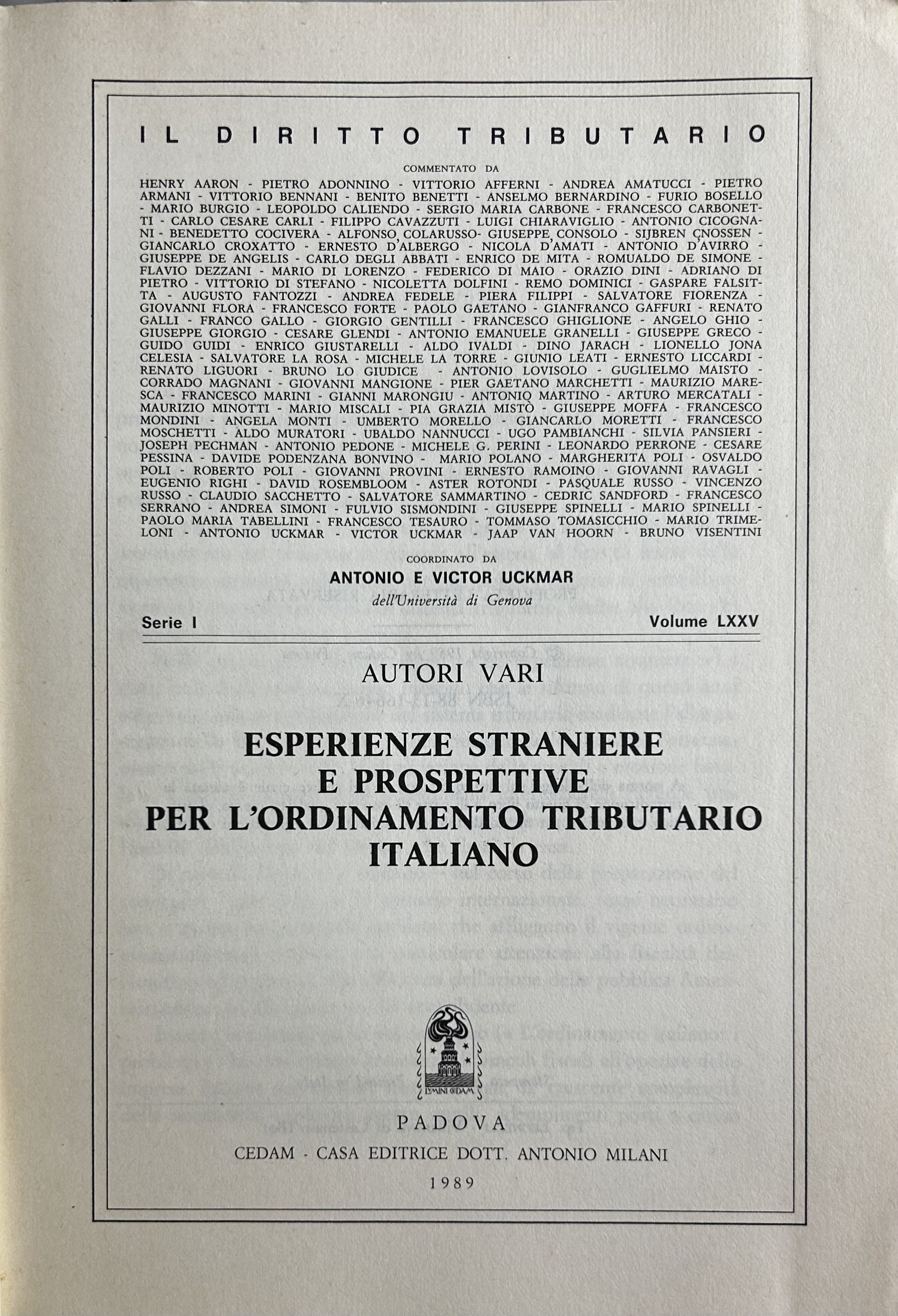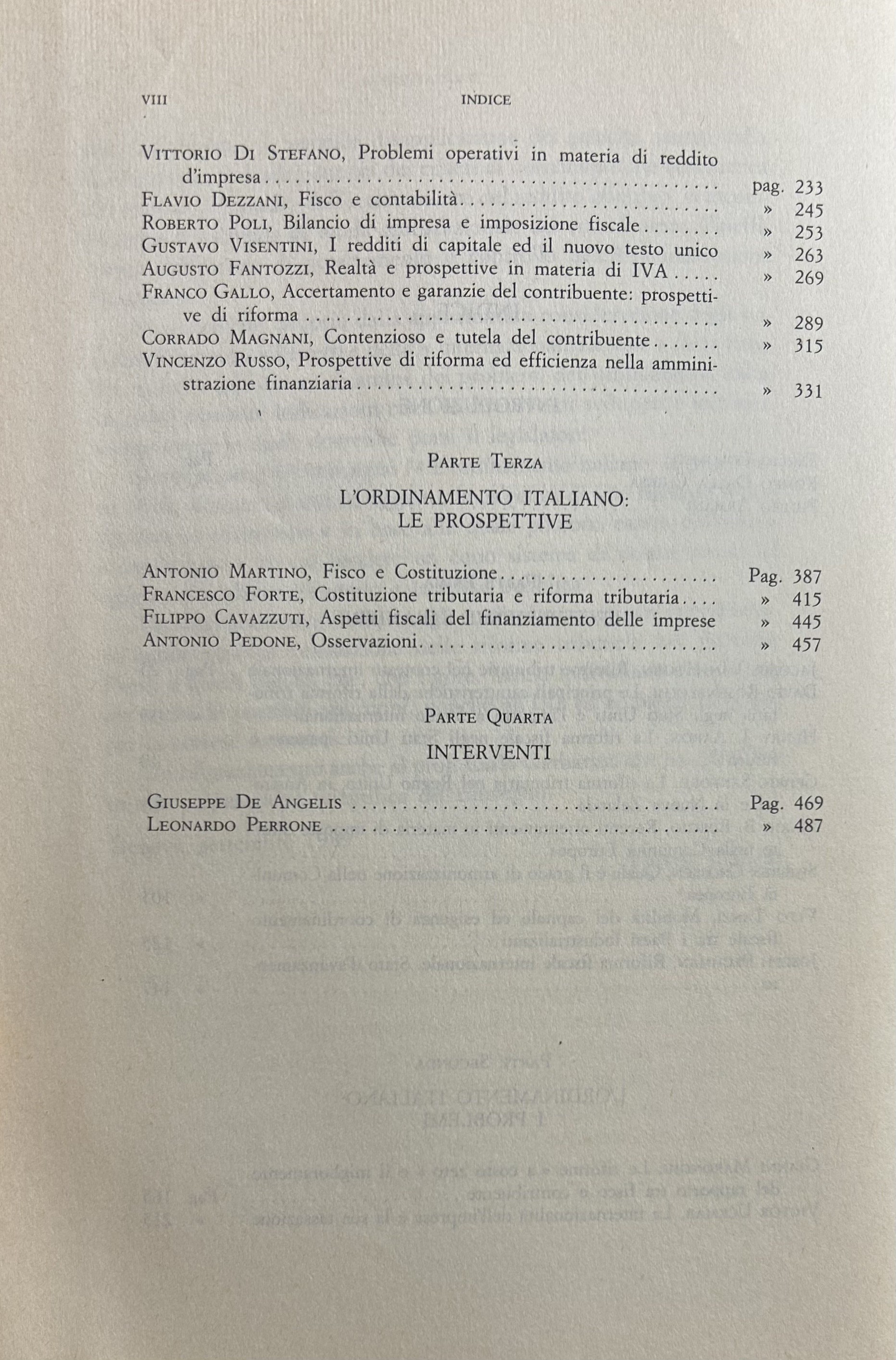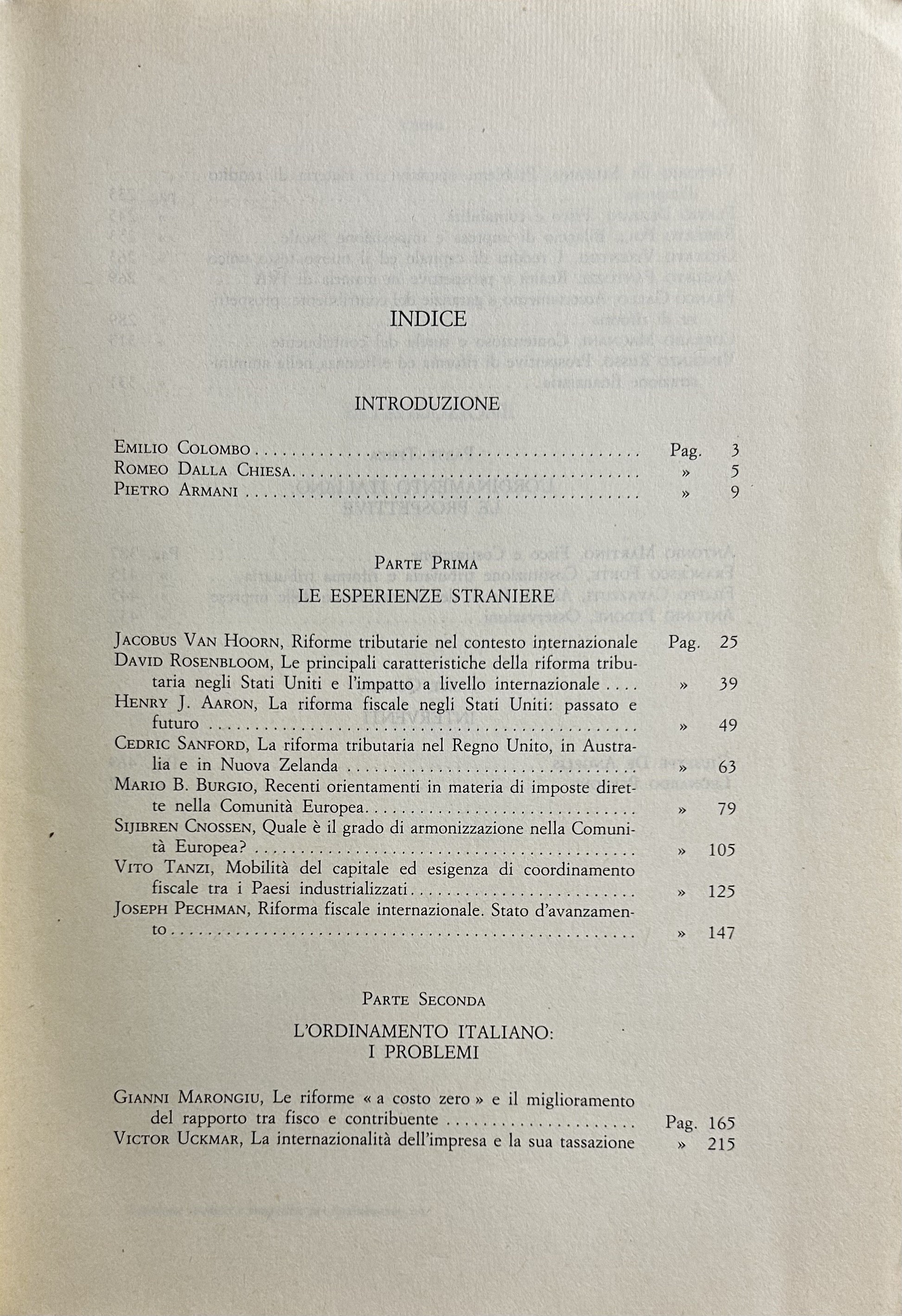 Scritti di: Aaron, Armani, Burgio, Cnossen, Colombo, Dalla Chiesa, Cavazzuti, De Angelis, Dezzani, Di Stefano, Fantozzi, Forte, Gallo, Magnani, Marongiu, Martino, Pechman, Pedone, Perrone, Poli, Rosenbloom, Russo, Sanford, Tanzi, Uckmar, Van Hoorn, Visentini