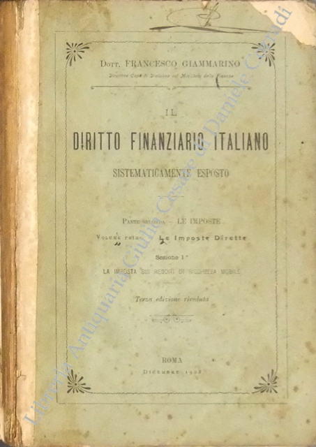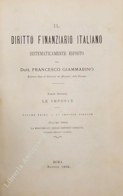 Il diritto finanziario italiano sistematicamente esposto. Parte seconda - Le imposte. Volume primo - Le imposte dirette: Sezione prima - La imposta sui redditi di ricchezza mobile; Sezione seconda - Le imposte fondiarie ed il catasto. Sezione terza - La riscossione delle imposte dirette