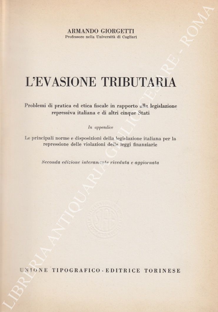 L'evasione tributaria. Problemi di pratica ed etica fiscale in rapporto alla legislazione repressiva italiana e di altri cinque Stati. In appendice Le principali norme e disposizioni della legislazione italiana per la repressione delle violazioni delle leggi finanziarie