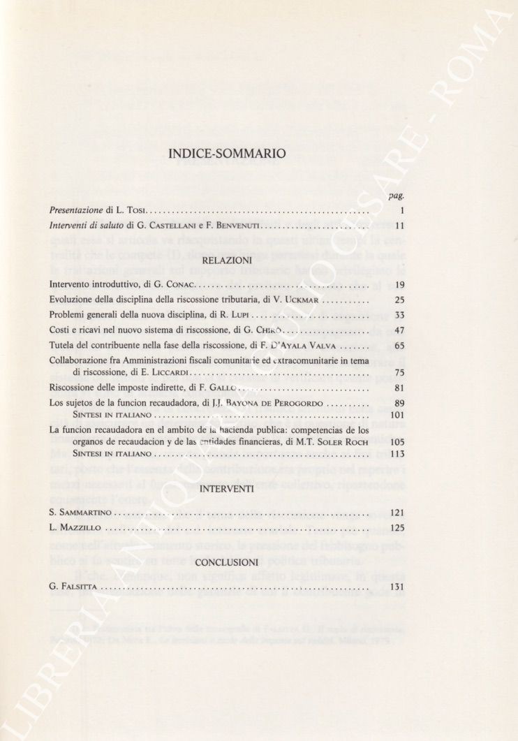 Scritti di: Bayona de Perogordo, Benvenuti, Castellani, Chirò, Conac, D’Ayala Valva, Falsitta, Gallo, Liccardi, Lupi, Mazzillo, Sammaryino, Soler Roch, Uckmar,Â