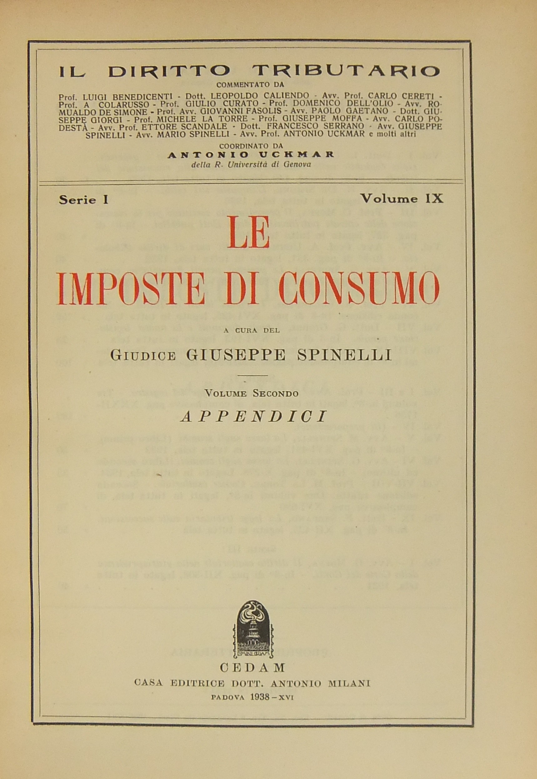 Le imposte di consumo. Vol. I. Vol. II Appendici