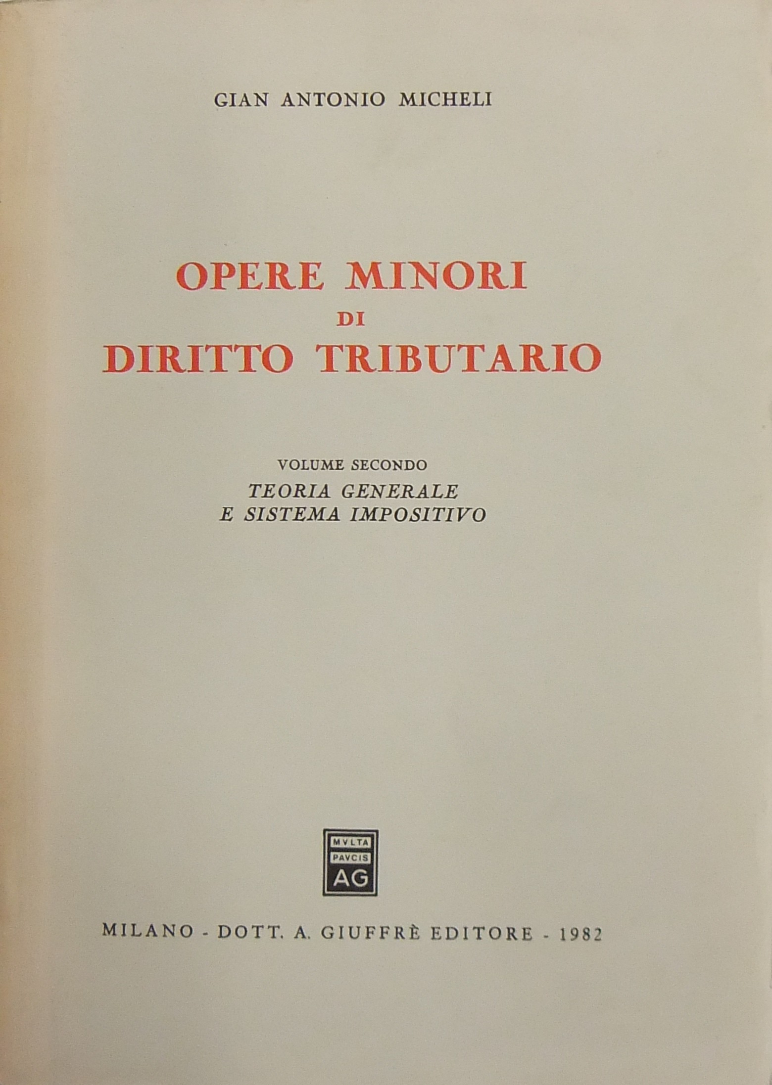 Opere minori di diritto tributario. Vol. I - Il processo tributario. Vol. II - Teoria generale e sistema impositivo