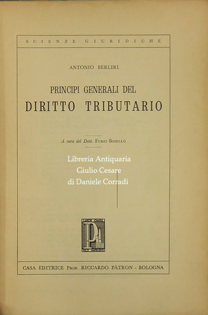 Principi generali del diritto tributario. A cura del Dott. Furio Bosello