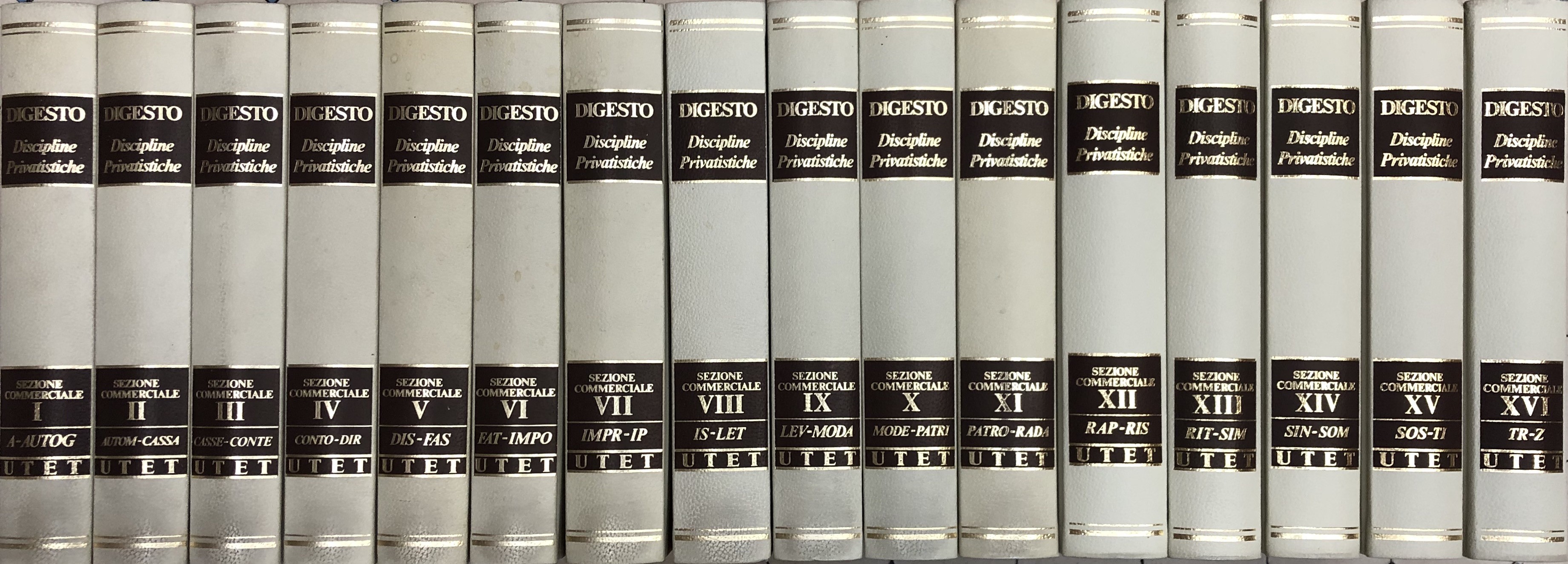 Digesto. Quarta edizione. Discipline privatistiche: Sezione civile (19 volumi); Sezione commerciale (16 volumi). Discipline penalistiche (15 volumi). Discipline pubblicistiche (15 volumi). Volume di Indici. Presidente del comitato scientifico Rodolfo Sacco