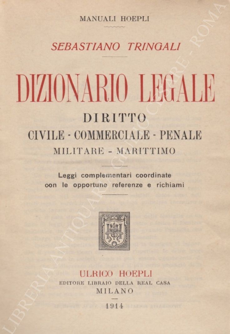 Dizionario legale. Diritto civile, commerciale, penale, militar,e marittimo. Leggi complementari coordinate con le opportune referenze e richiami