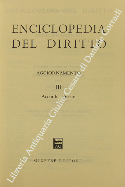 Enciclopedia del diritto. Aggiornamento III (Accordi-Spazio). Diretta da Francesco Calasso poi (dal 1966) da Costantino Mortati e Salvatore Pugliatti poi anche (dal 1978) da Francesco Santoro-Passarelli