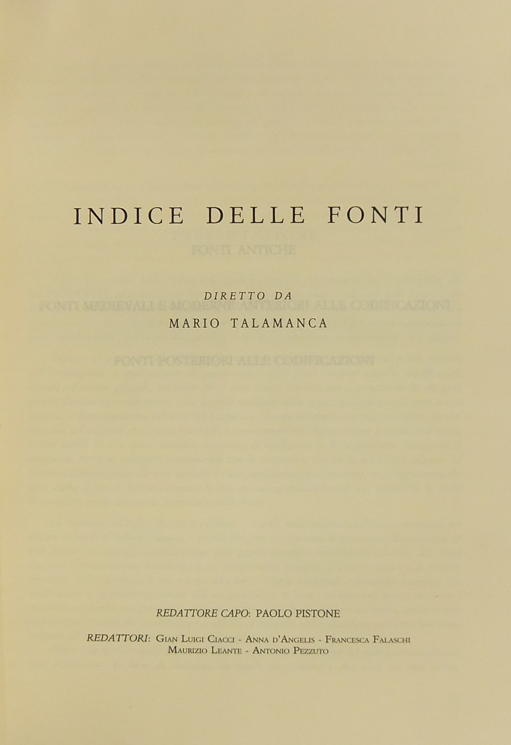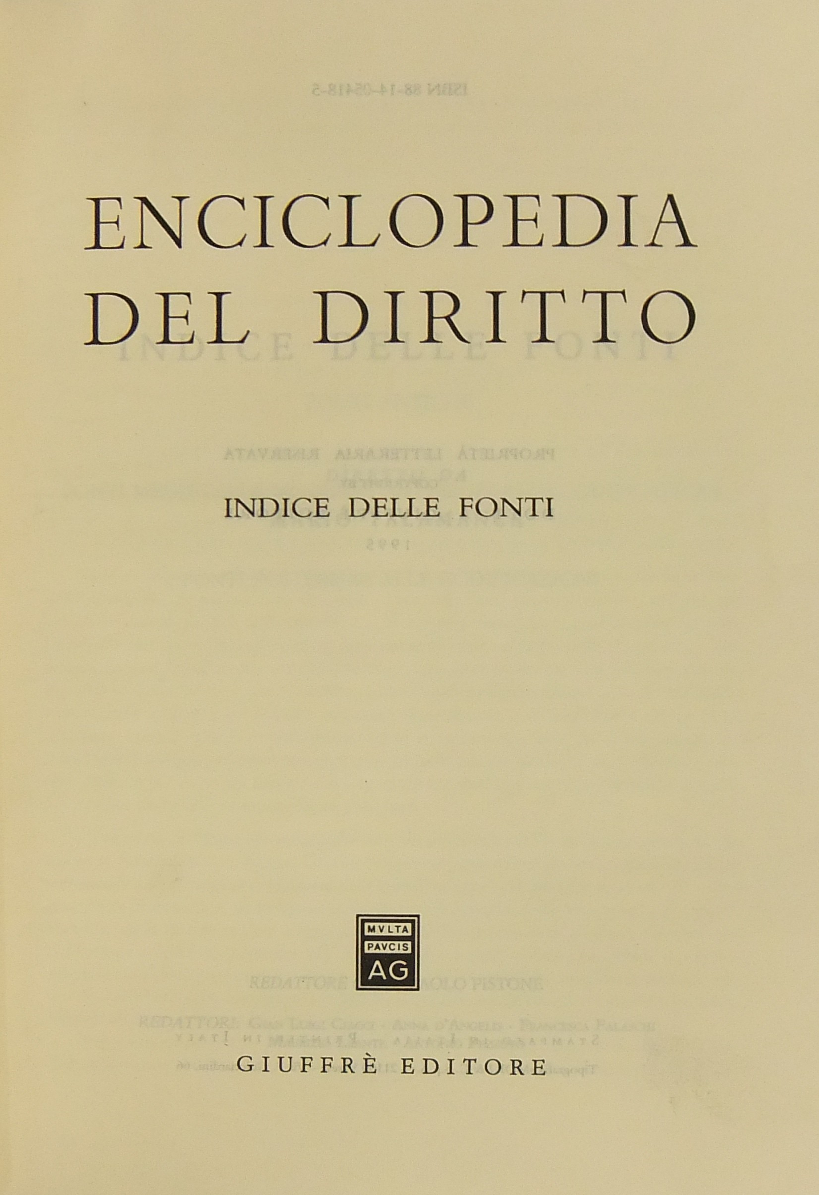 Enciclopedia del diritto. Indice delle fonti. A-Z. (Dal vol. I al XLVI). Diretta da Francesco Calasso poi (dal 1966) da Costantino Mortati e Salvatore Pugliatti poi anche (dal 1978) da Francesco Santoro-Passarelli