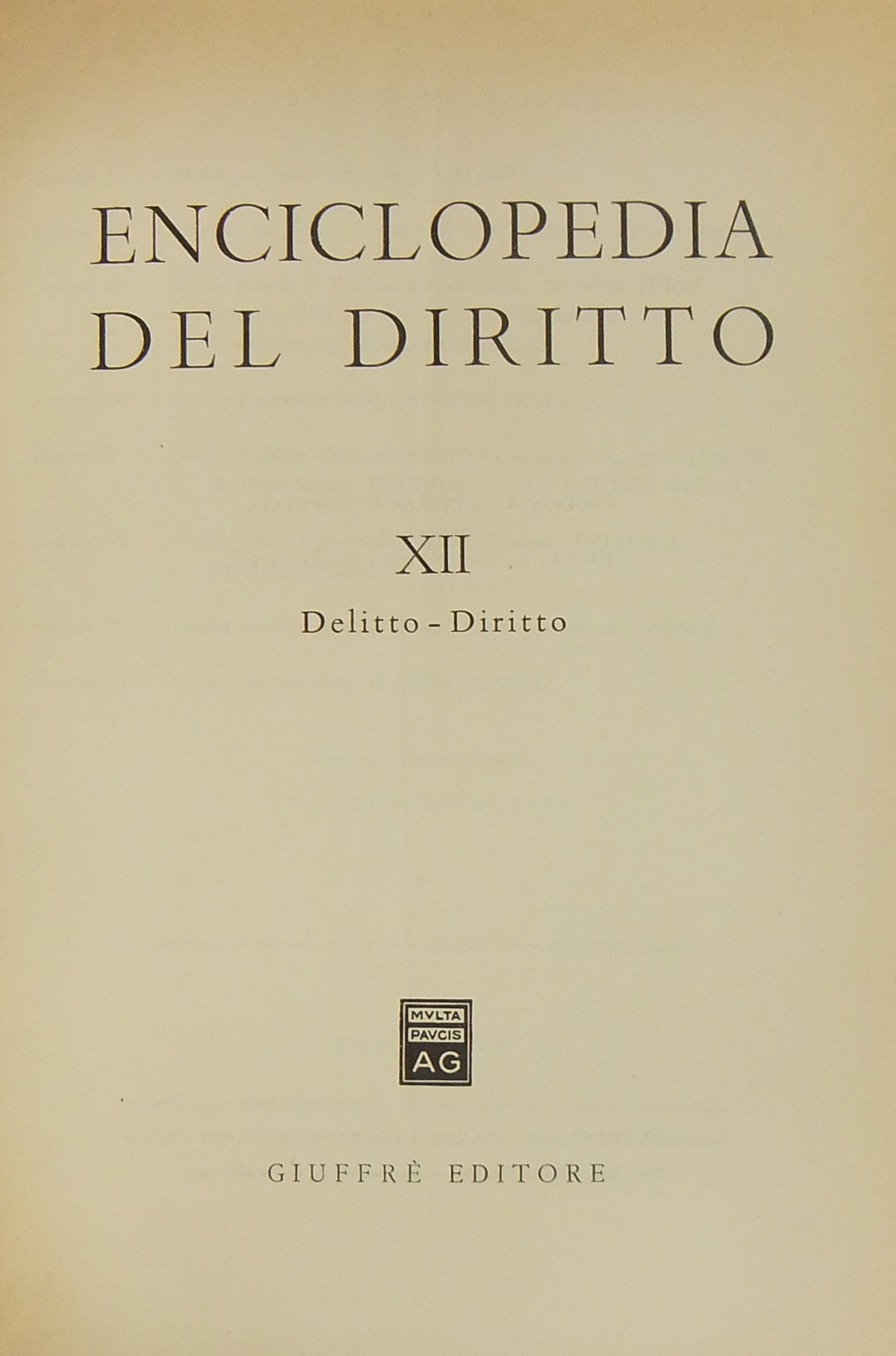 Enciclopedia del diritto. Vol. XII - Delitto-Diritto. Diretta da Francesco Calasso poi (dal 1966) da Costantino Mortati e Salvatore Pugliatti poi anche (dal 1978) da Francesco Santoro-Passarelli