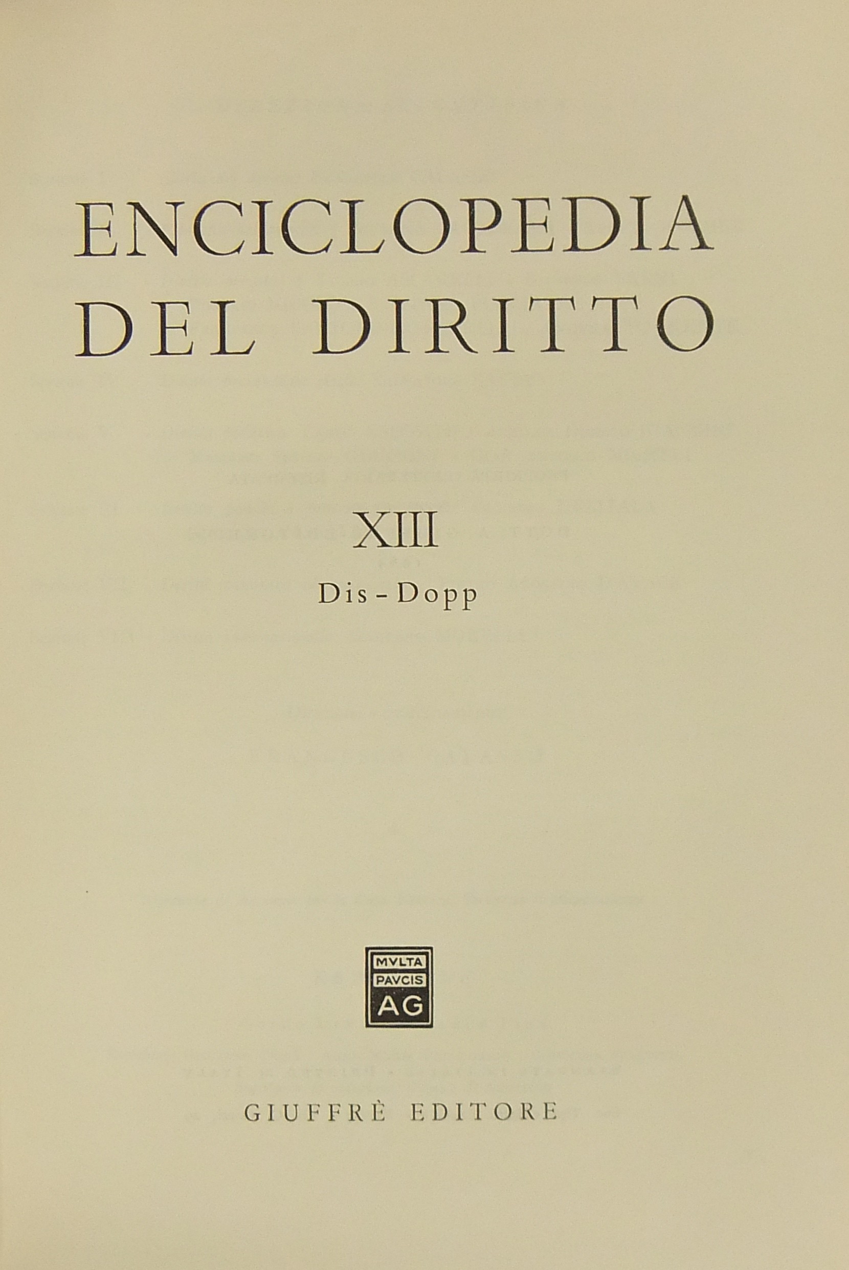 Enciclopedia del diritto. Vol. XIII - Dis-Dopp. Diretta da Francesco Calasso poi (dal 1966) da Costantino Mortati e Salvatore Pugliatti poi anche (dal 1978) da Francesco Santoro-Passarelli