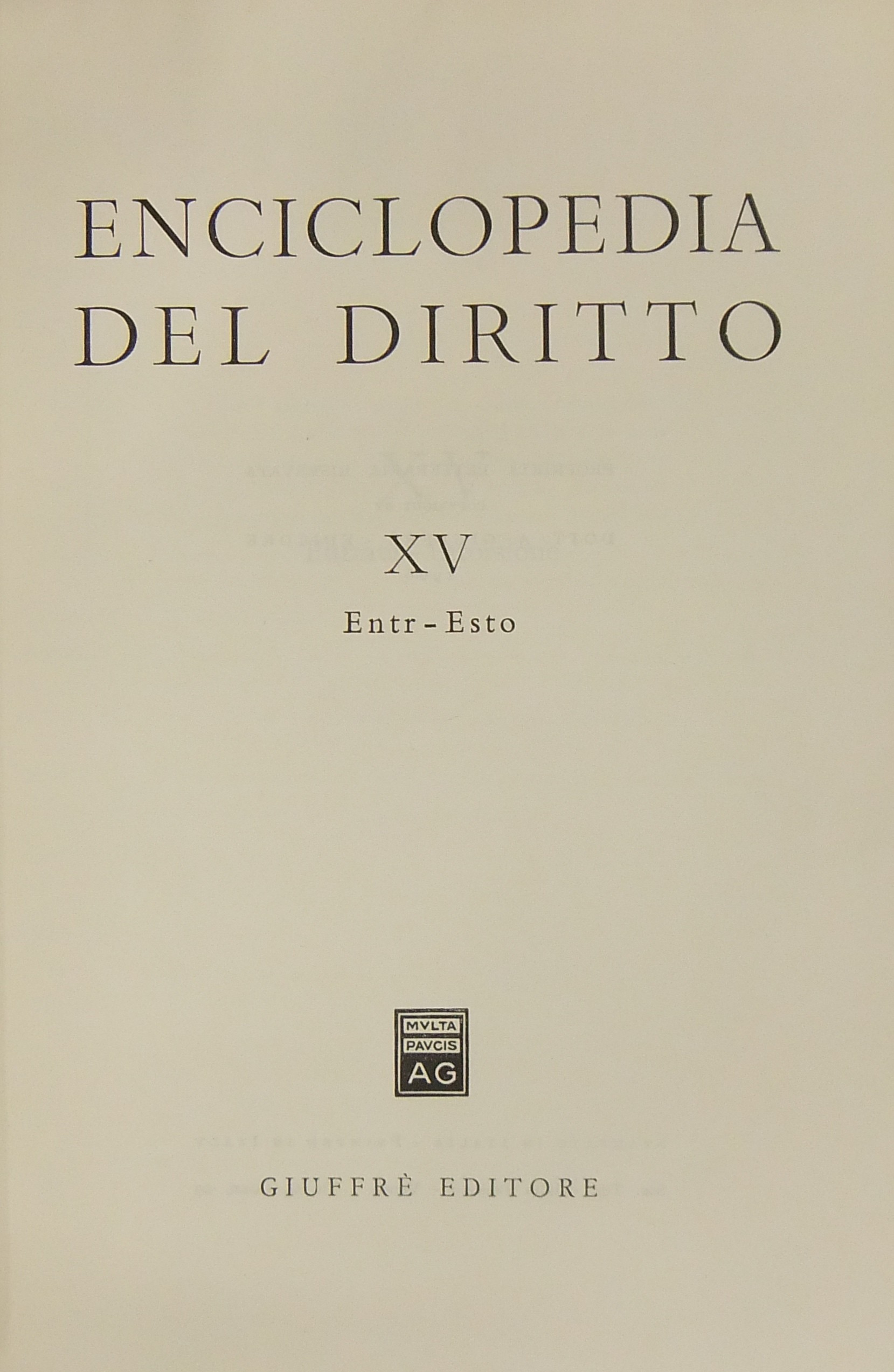 Enciclopedia del diritto. Vol. XV - Entr-Esto. Diretta da Francesco Calasso poi (dal 1966) da Costantino Mortati e Salvatore Pugliatti poi anche (dal 1978) da Francesco Santoro-Passarelli