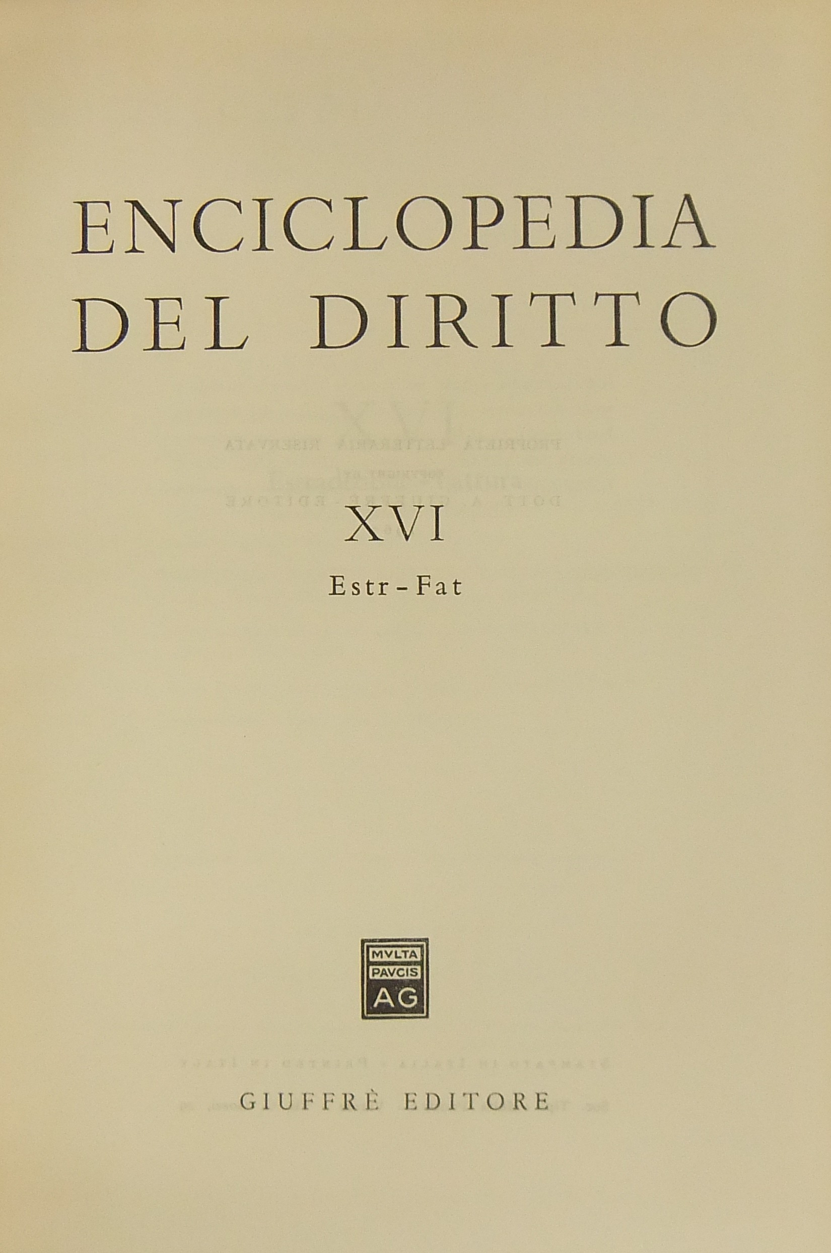 Enciclopedia del diritto. Vol. XVI - Estr-Fatt. Diretta da Francesco Calasso poi (dal 1966) da Costantino Mortati e Salvatore Pugliatti poi anche (dal 1978) da Francesco Santoro-Passarelli