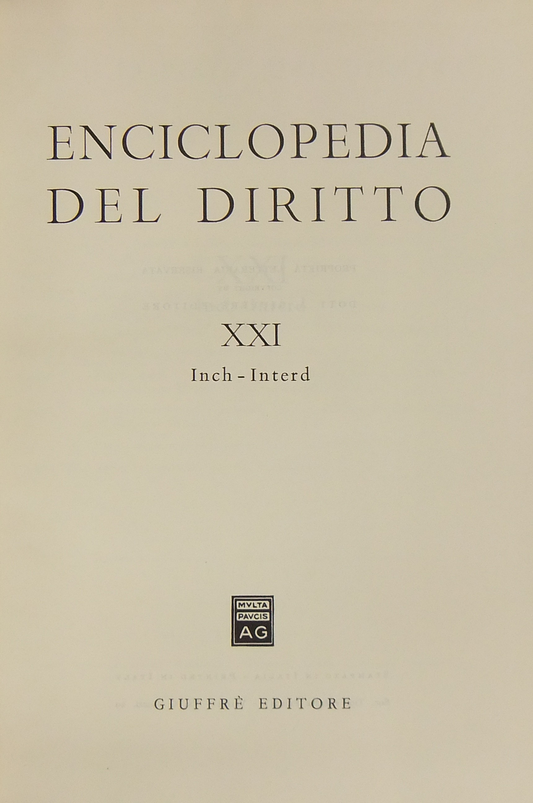 Enciclopedia del diritto. Vol. XXI - Inch-Interd. Diretta da Francesco Calasso poi (dal 1966) da Costantino Mortati e Salvatore Pugliatti poi anche (dal 1978) da Francesco Santoro-Passarelli