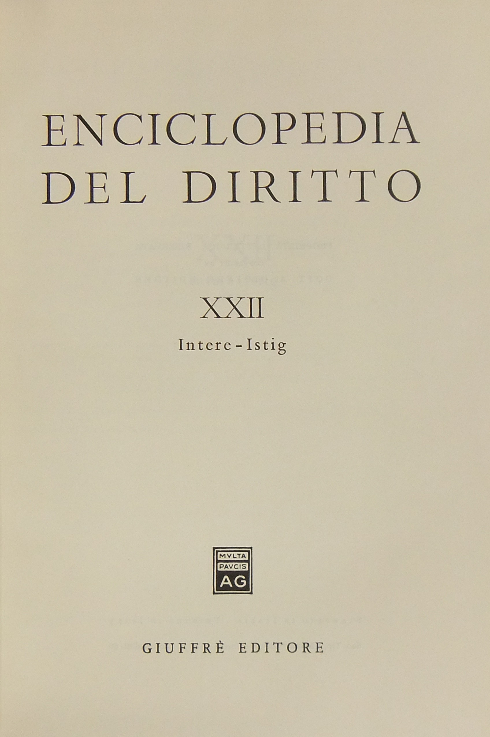 Enciclopedia del diritto. Vol. XXII – Intere-Istig.