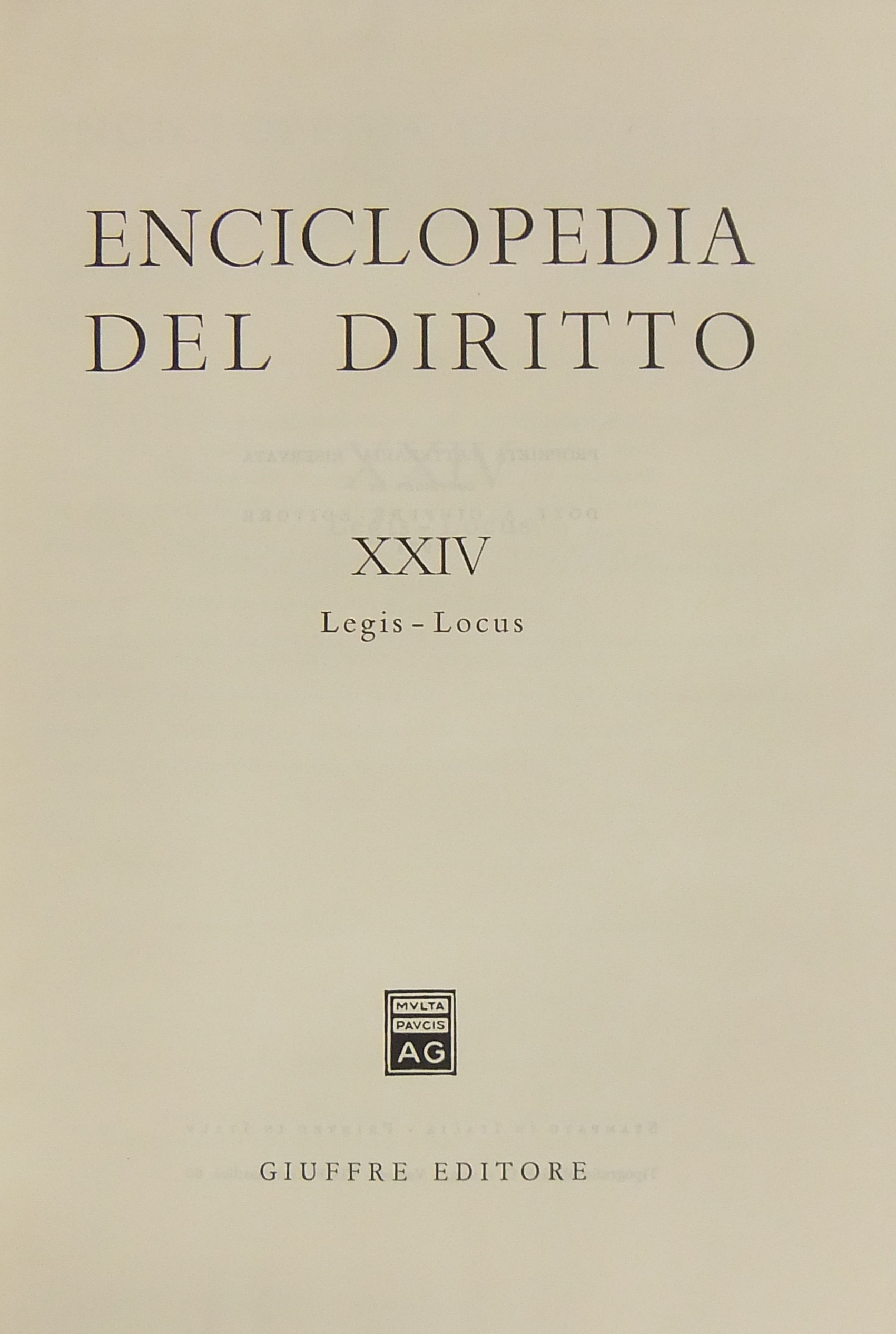 Enciclopedia del diritto. Vol. XXIV - Legis-Locus. Diretta da Francesco Calasso poi (dal 1966) da Costantino Mortati e Salvatore Pugliatti poi anche (dal 1978) da Francesco Santoro-Passarelli