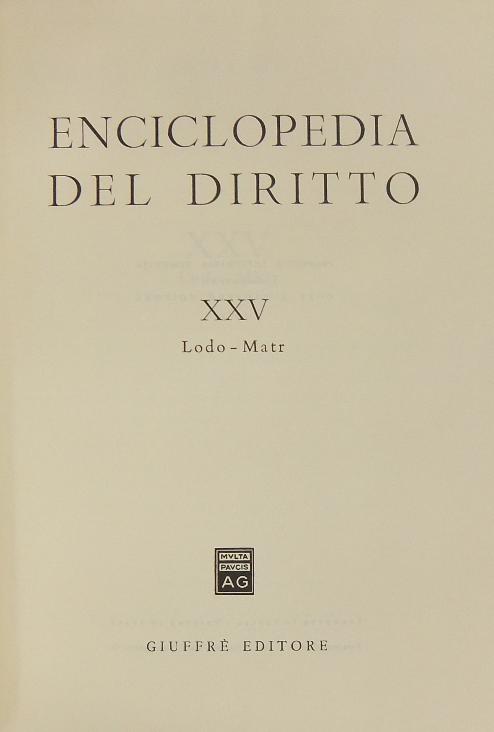 Enciclopedia del diritto. Vol. XXV - Lodo-Matr. Diretta da Francesco Calasso poi (dal 1966) da Costantino Mortati e Salvatore Pugliatti poi anche (dal 1978) da Francesco Santoro-Passarelli