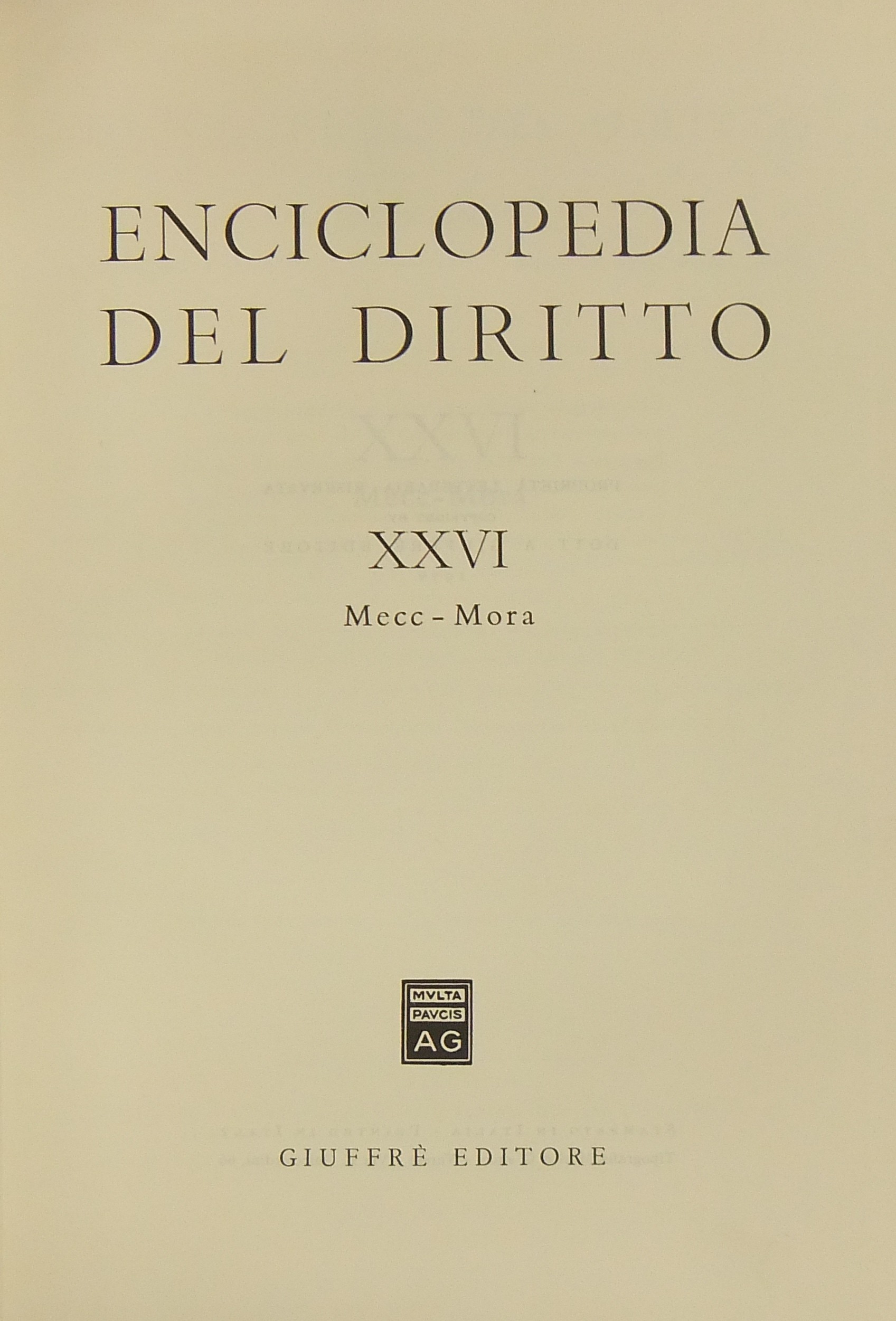 Enciclopedia del diritto. Vol. XXVI - Mecc-Mora. Diretta da Francesco Calasso poi (dal 1966) da Costantino Mortati e Salvatore Pugliatti poi anche (dal 1978) da Francesco Santoro-Passarelli