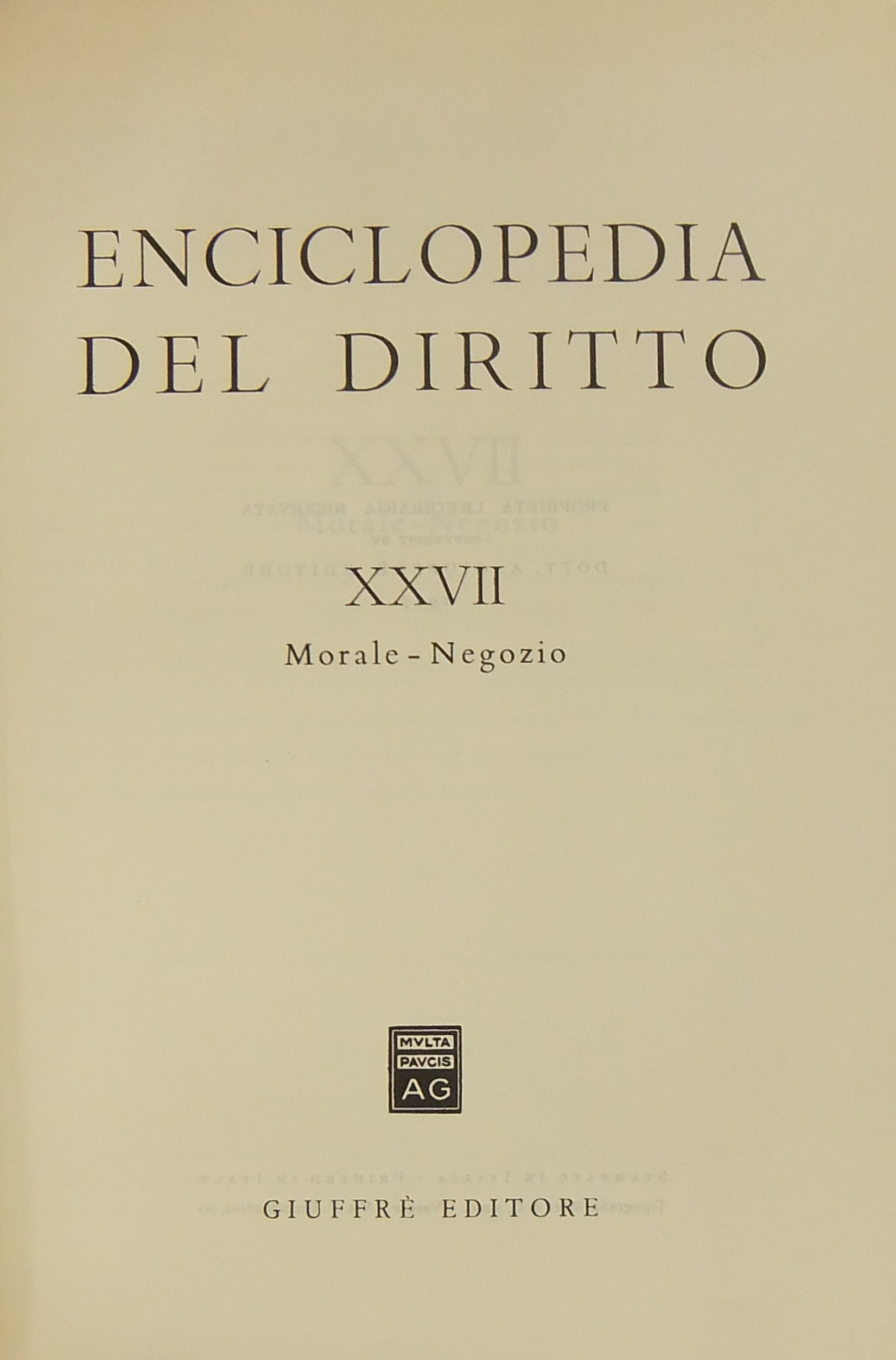 Enciclopedia del diritto. Vol. XXVII - Morale-Negozio. Diretta da Francesco Calasso poi (dal 1966) da Costantino Mortati e Salvatore Pugliatti poi anche (dal 1978) da Francesco Santoro-Passarelli