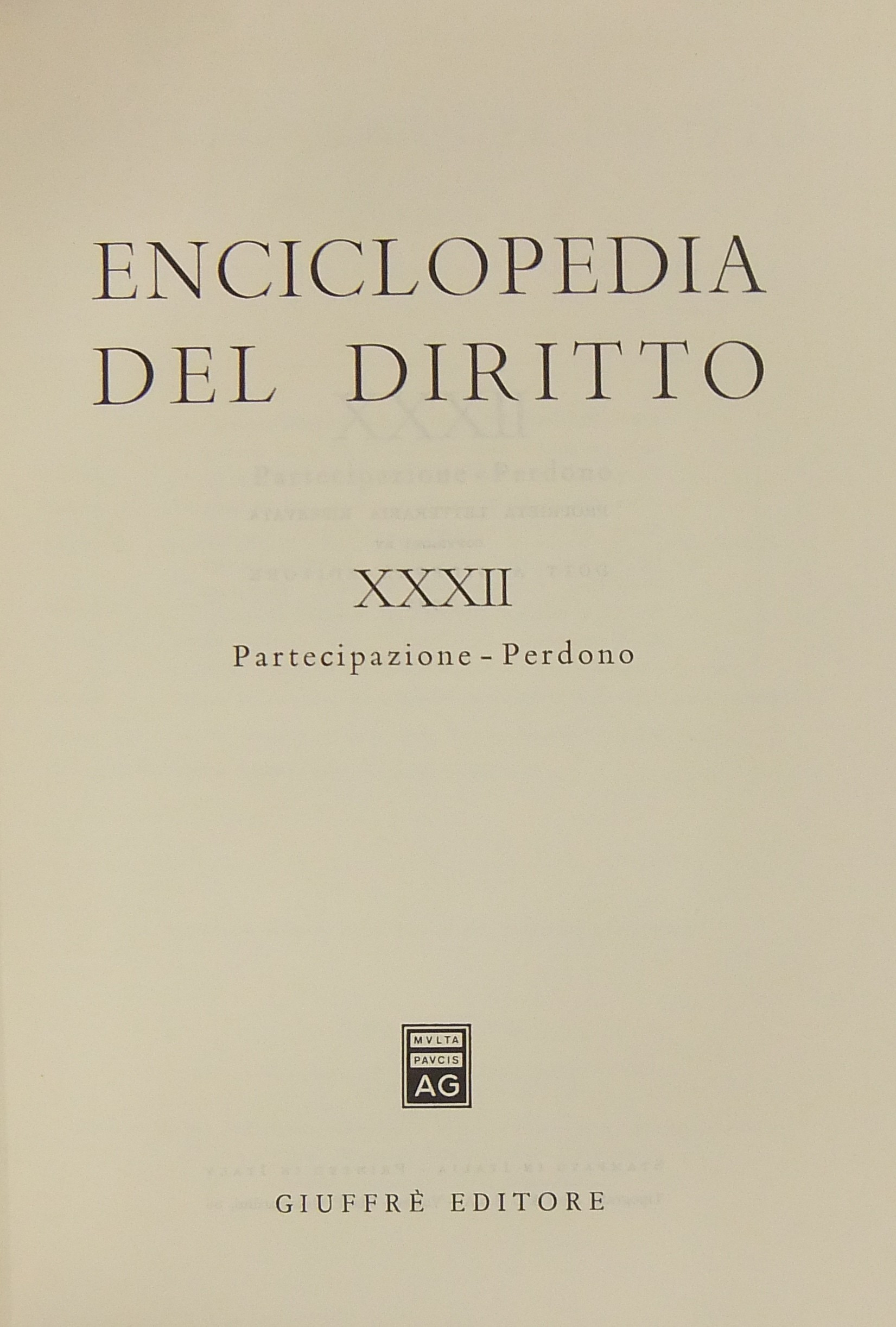 Enciclopedia del diritto. Vol. XXXII - Partecipazione-Perdono. Diretta da Francesco Calasso poi (dal 1966) da Costantino Mortati e Salvatore Pugliatti poi anche (dal 1978) da Francesco Santoro-Passarelli