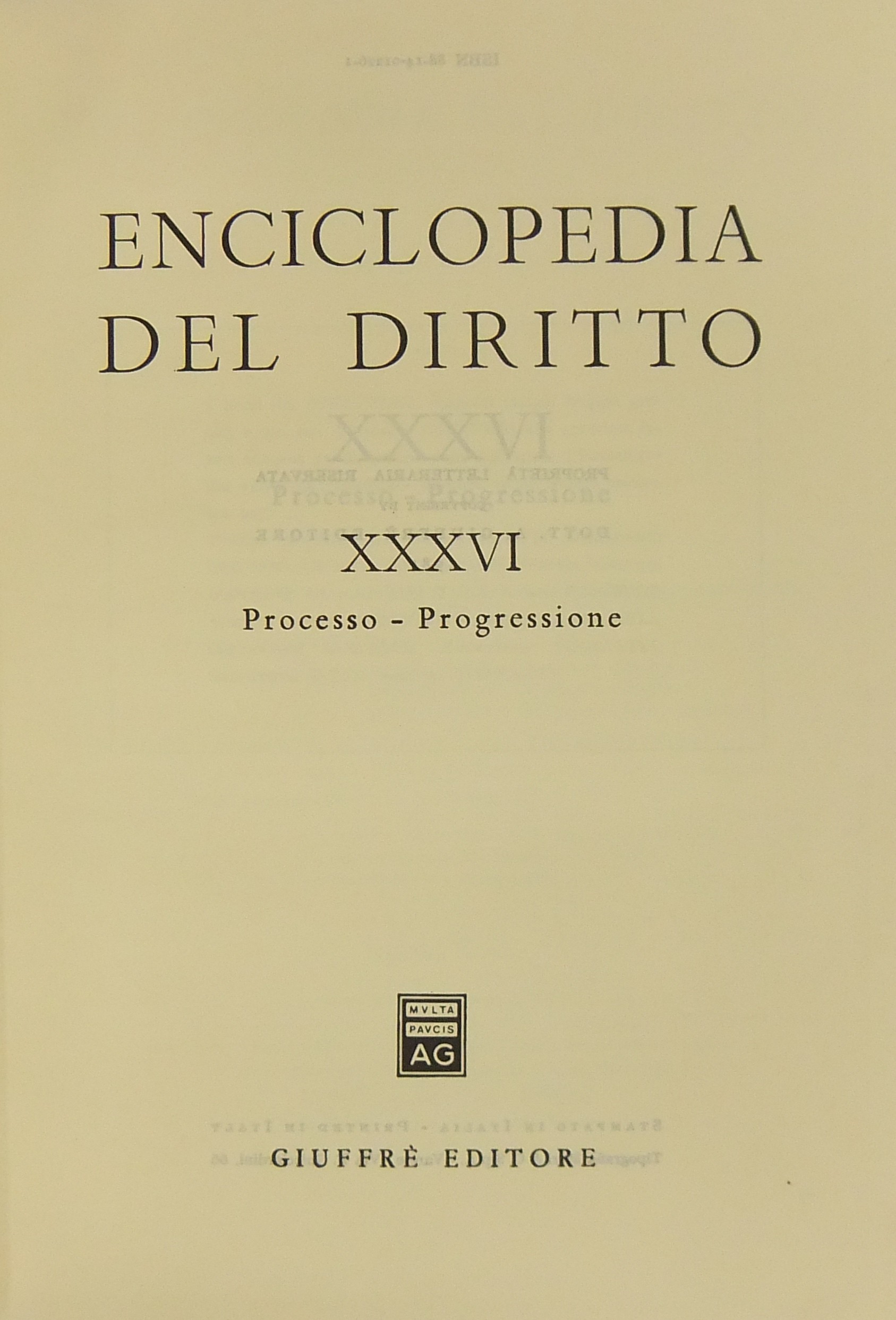 Enciclopedia del diritto. Vol. XXXVI - Processo-Progressione. Diretta da Francesco Calasso poi (dal 1966) da Costantino Mortati e Salvatore Pugliatti poi anche (dal 1978) da Francesco Santoro-Passarelli