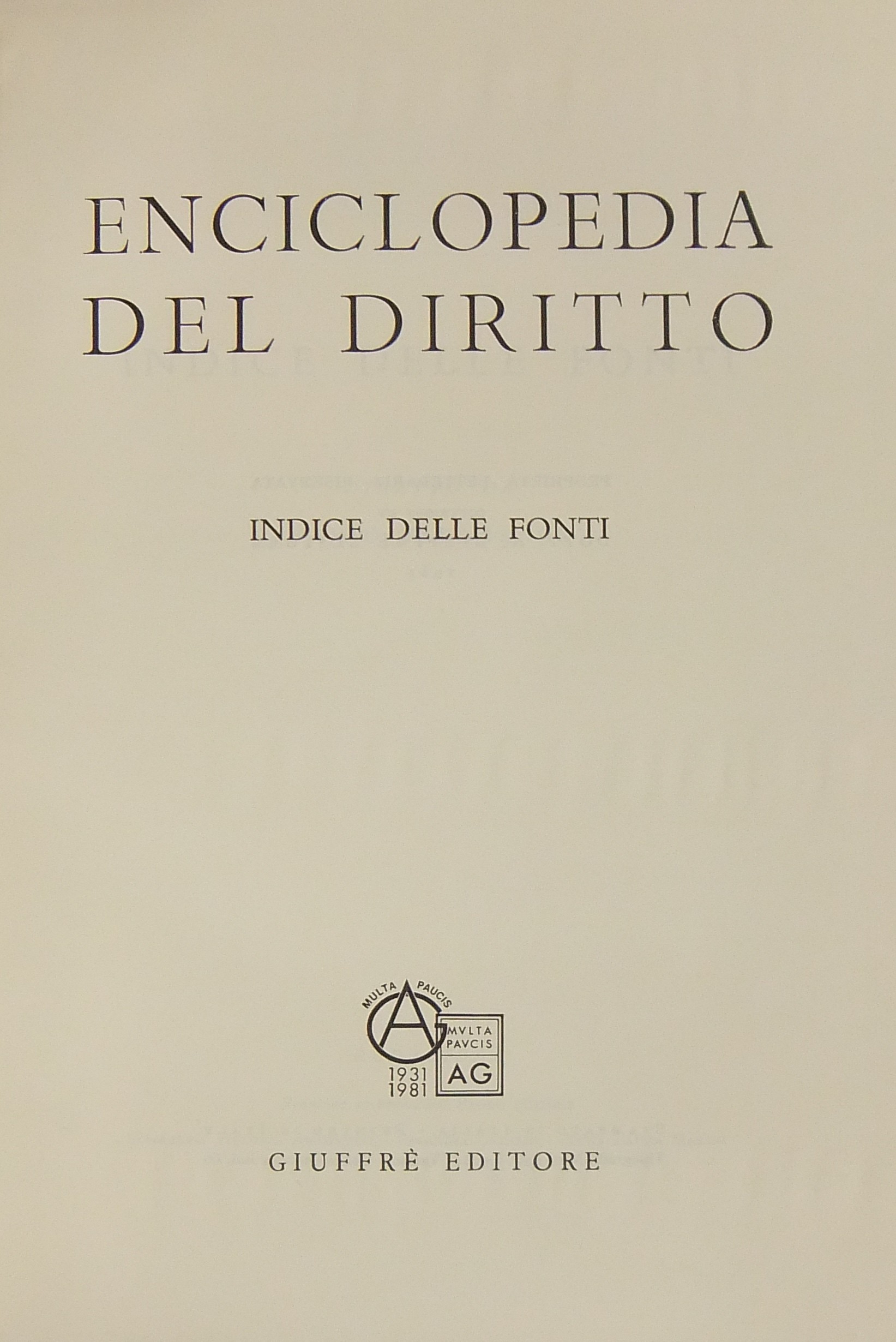 Enciclopedia del diritto. Indice delle fonti. A-L. (Dal vol. I al XXV). Diretta da Francesco Calasso poi (dal 1966) da Costantino Mortati e Salvatore Pugliatti poi anche (dal 1978) da Francesco Santoro-Passarelli