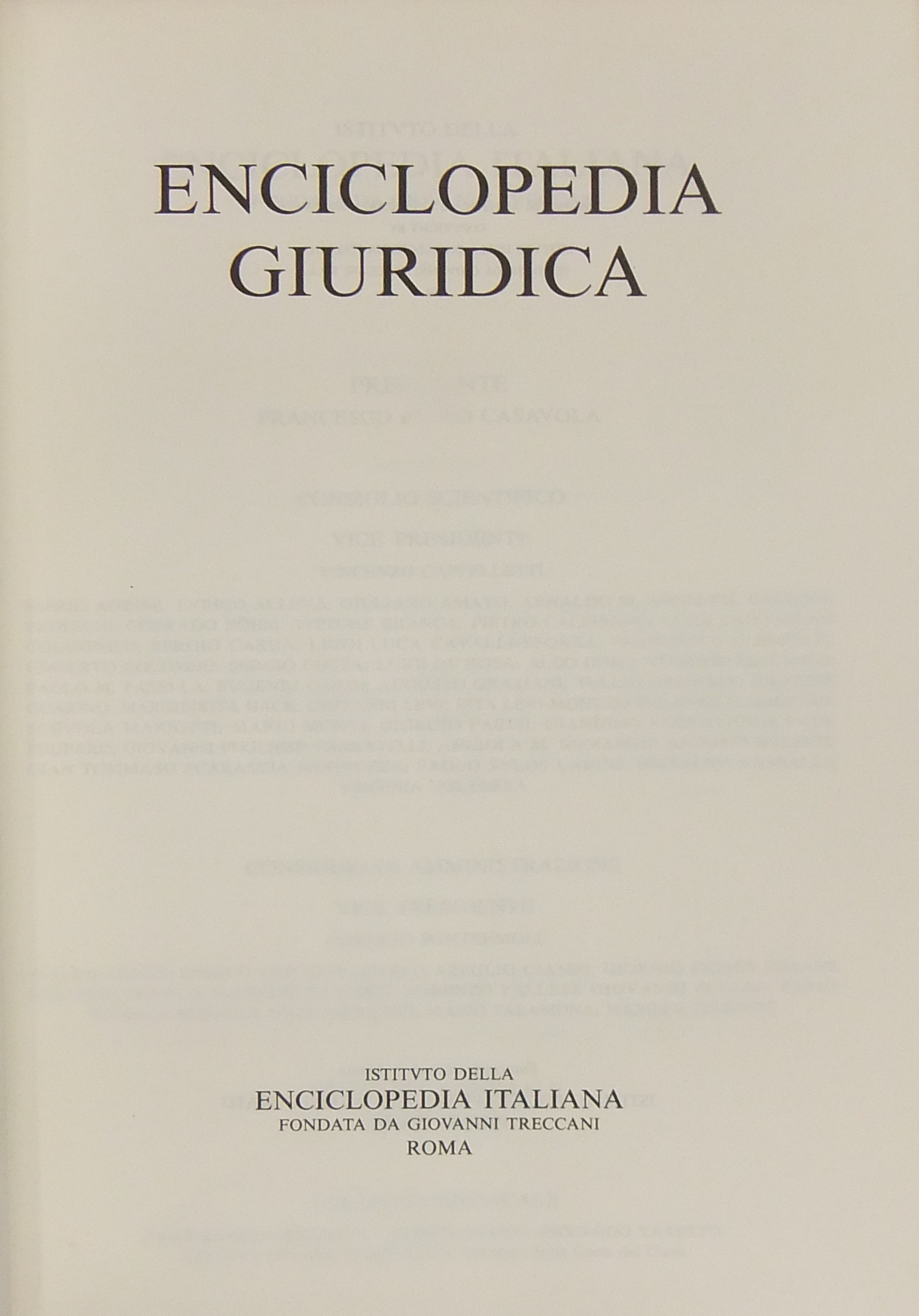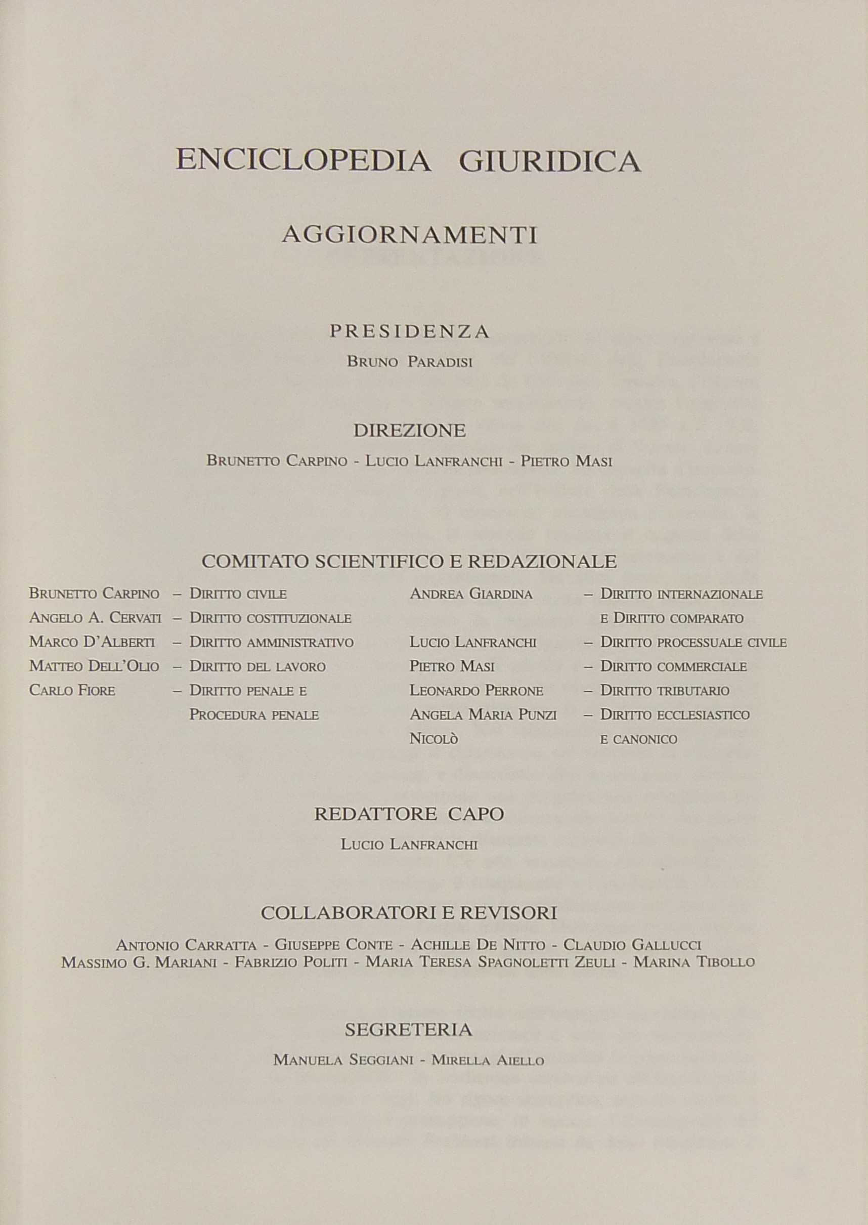 Comitato scientifico: Alessi, Bricola, Cappelletti, Fantozzi, Ferrari, Flore, Gallo, Gismondi, Giugni, Gorla, Margiotta Broglio, Mengoni, Monaco, Montesano, Nigro, Oppo, Pera, Pescatore, Pisapia, Proto Pisani, Rescigno, Sandulli, Scognamiglio, Siracusano, Trabucchi, Villari.