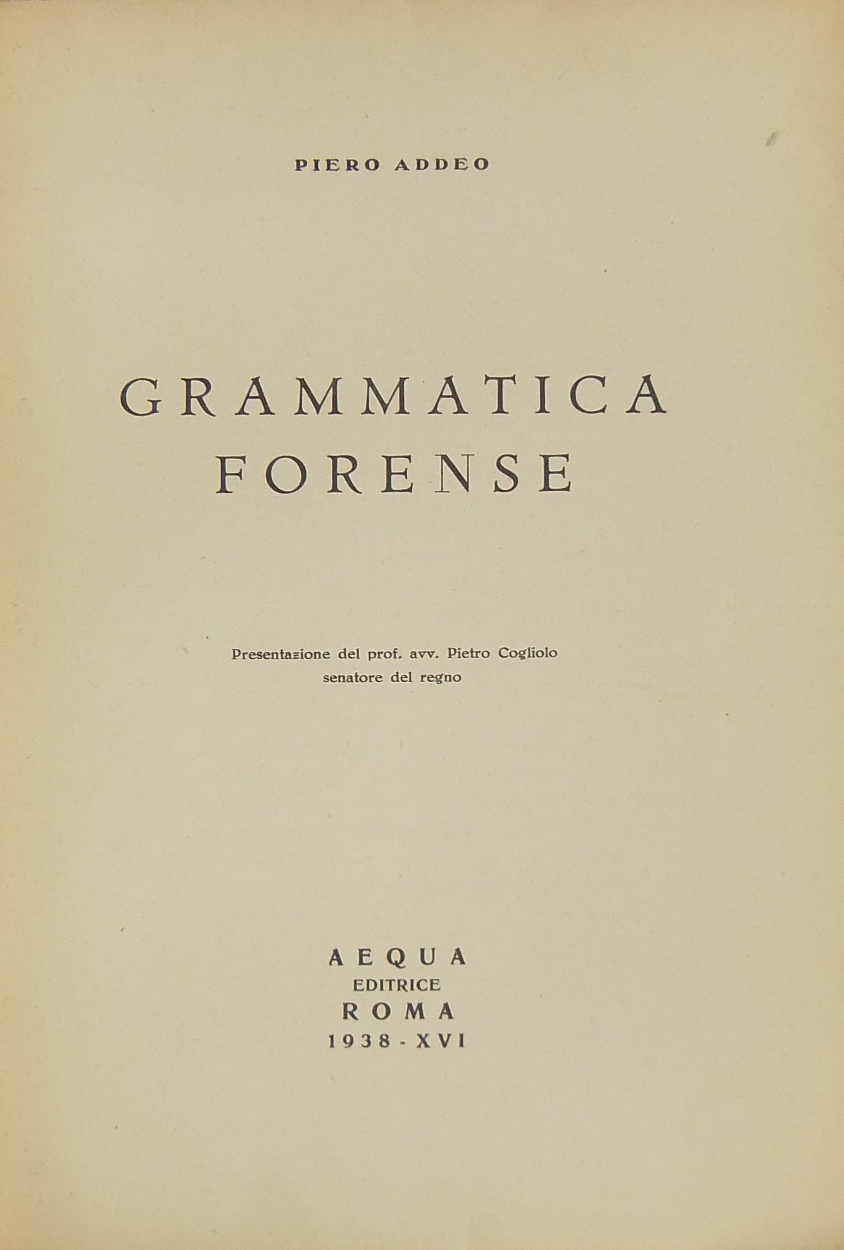 Grammatica forense. Presentazione del Sen. Pietro Cogliolo