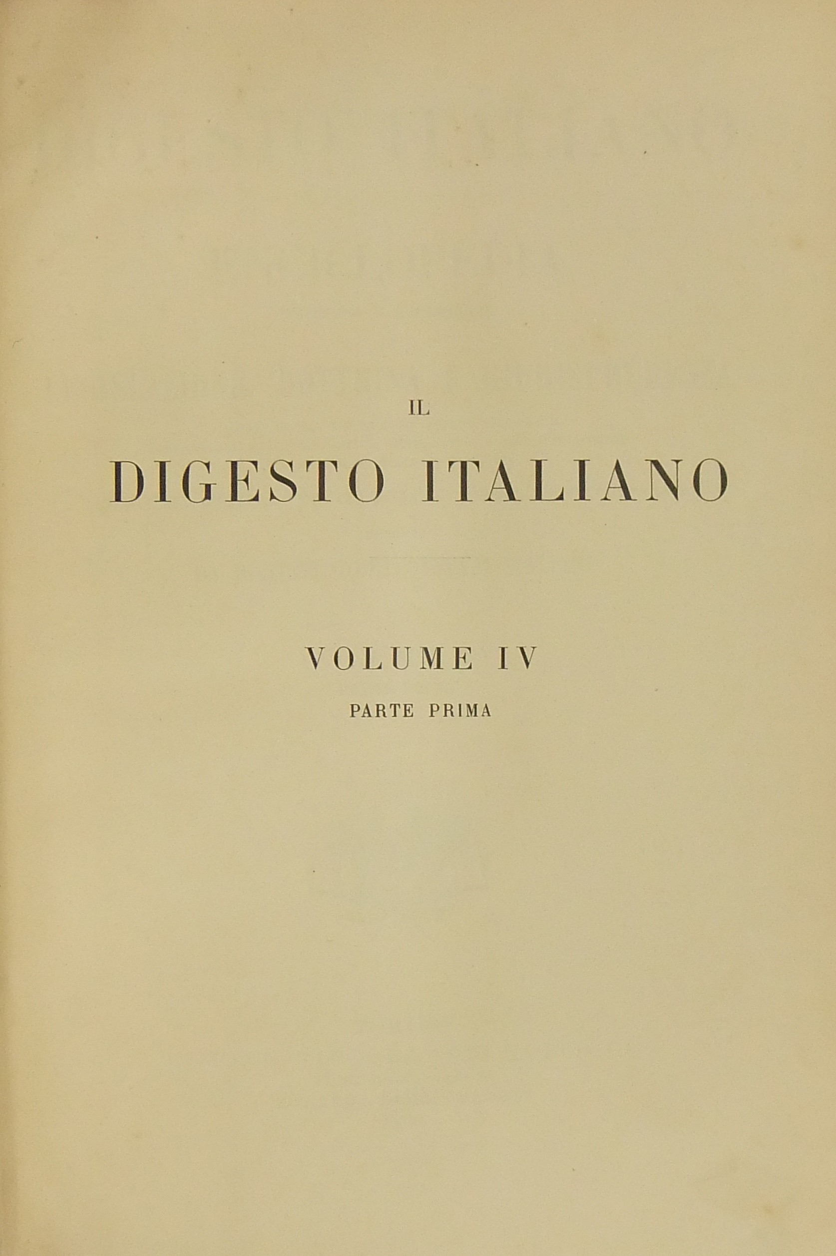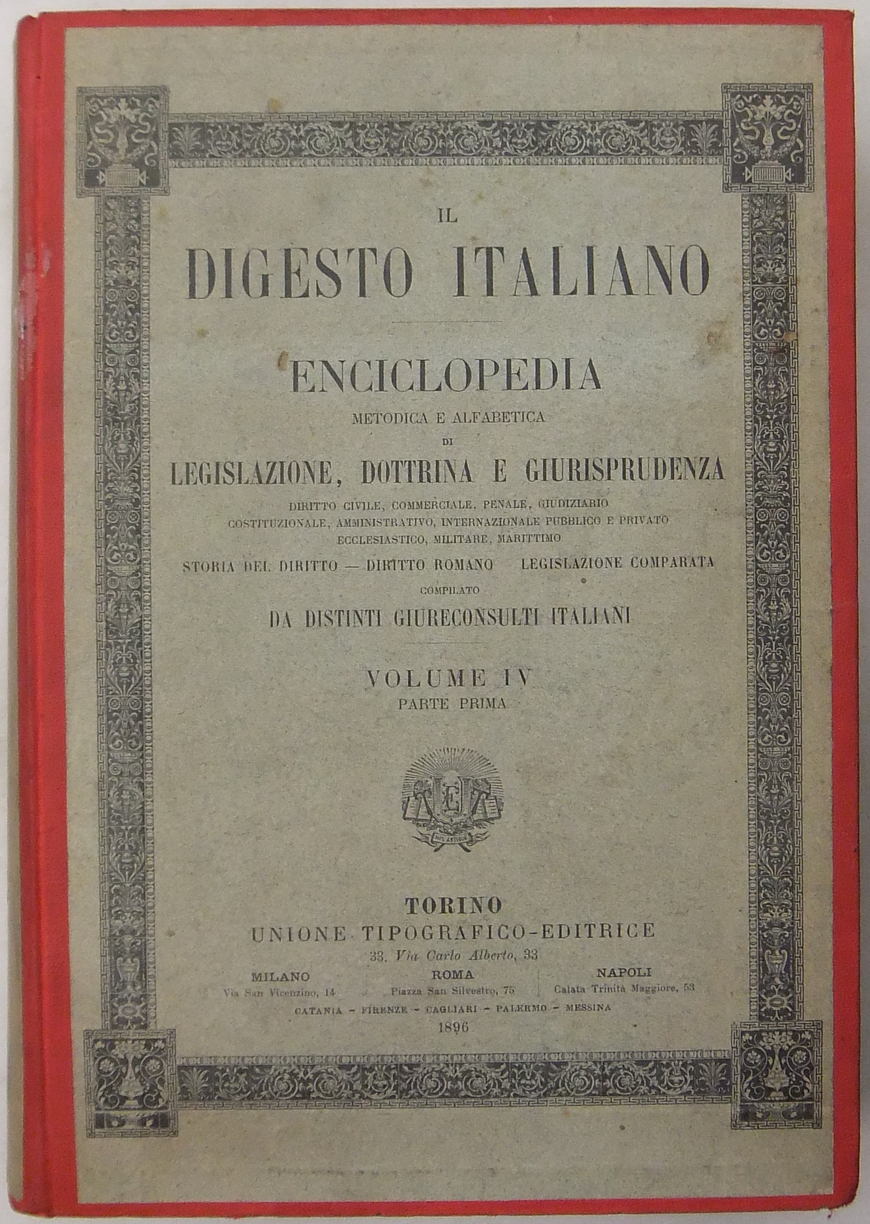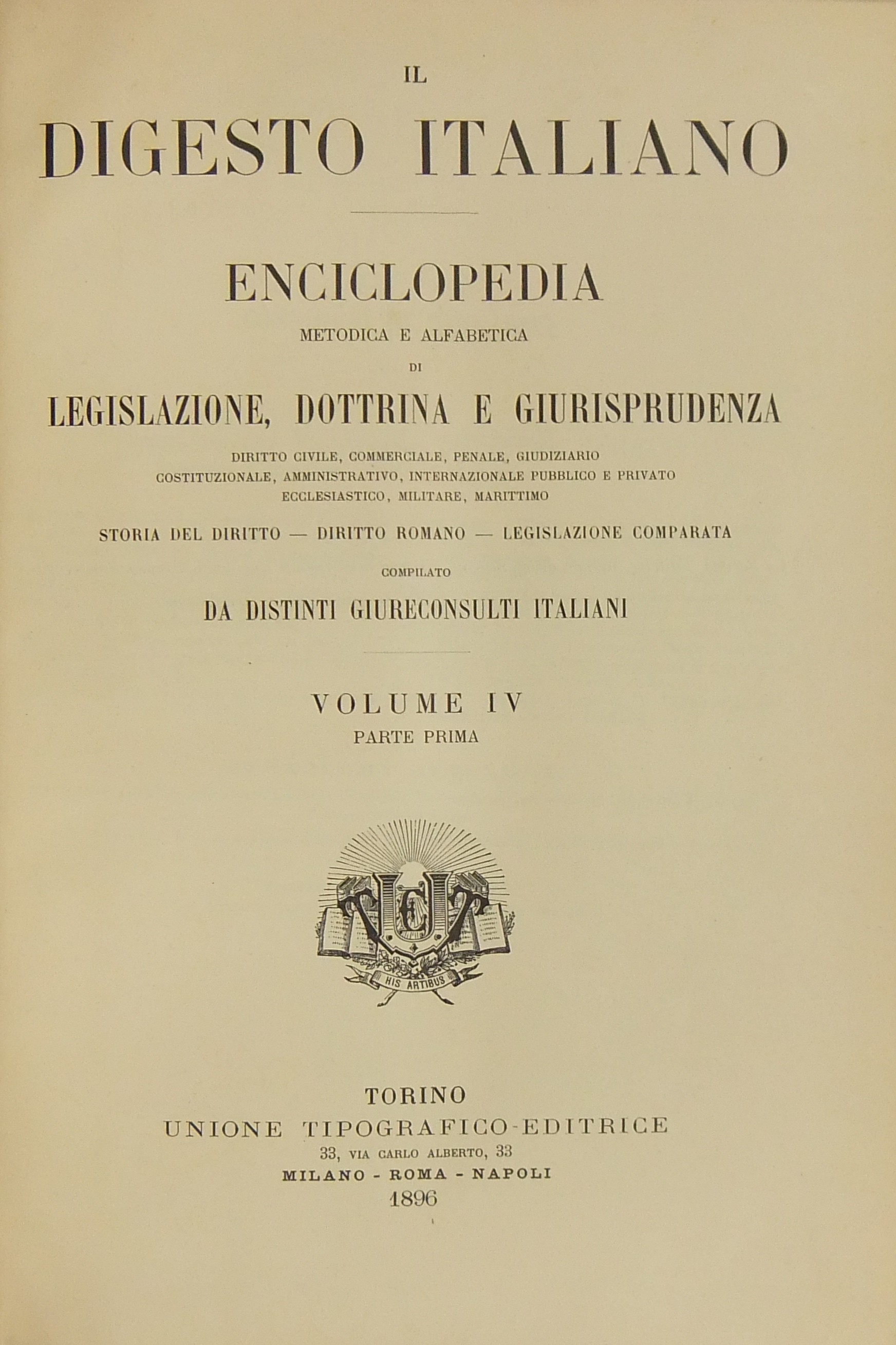 Il Digesto Italiano. Enciclopedia metodica e alfabetica di legislazione dottrina e giurisprudenza compilata da distinti giureconsulti italiani sotto la direzione di Luigi Lucchini. Vol. IV - parte prima - Appello-Assistenza pubblica