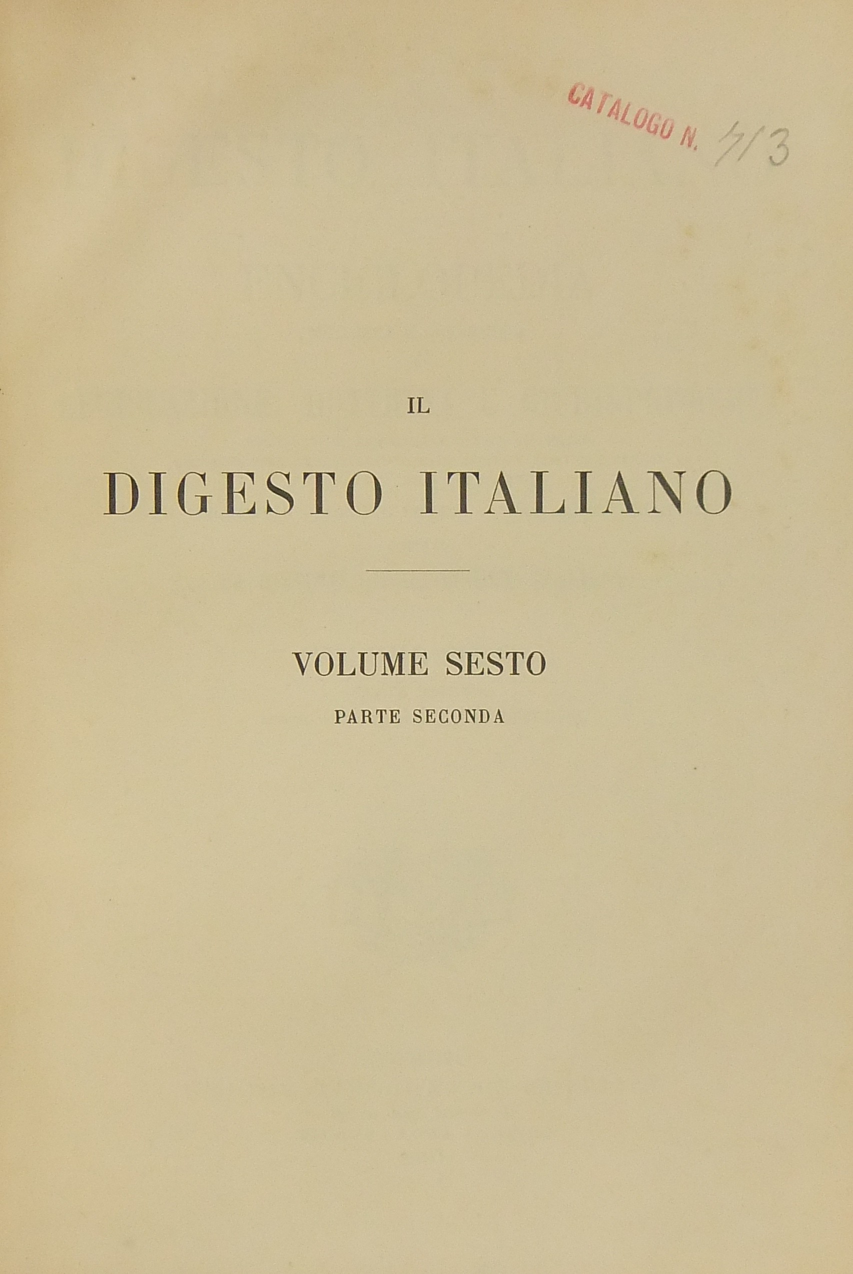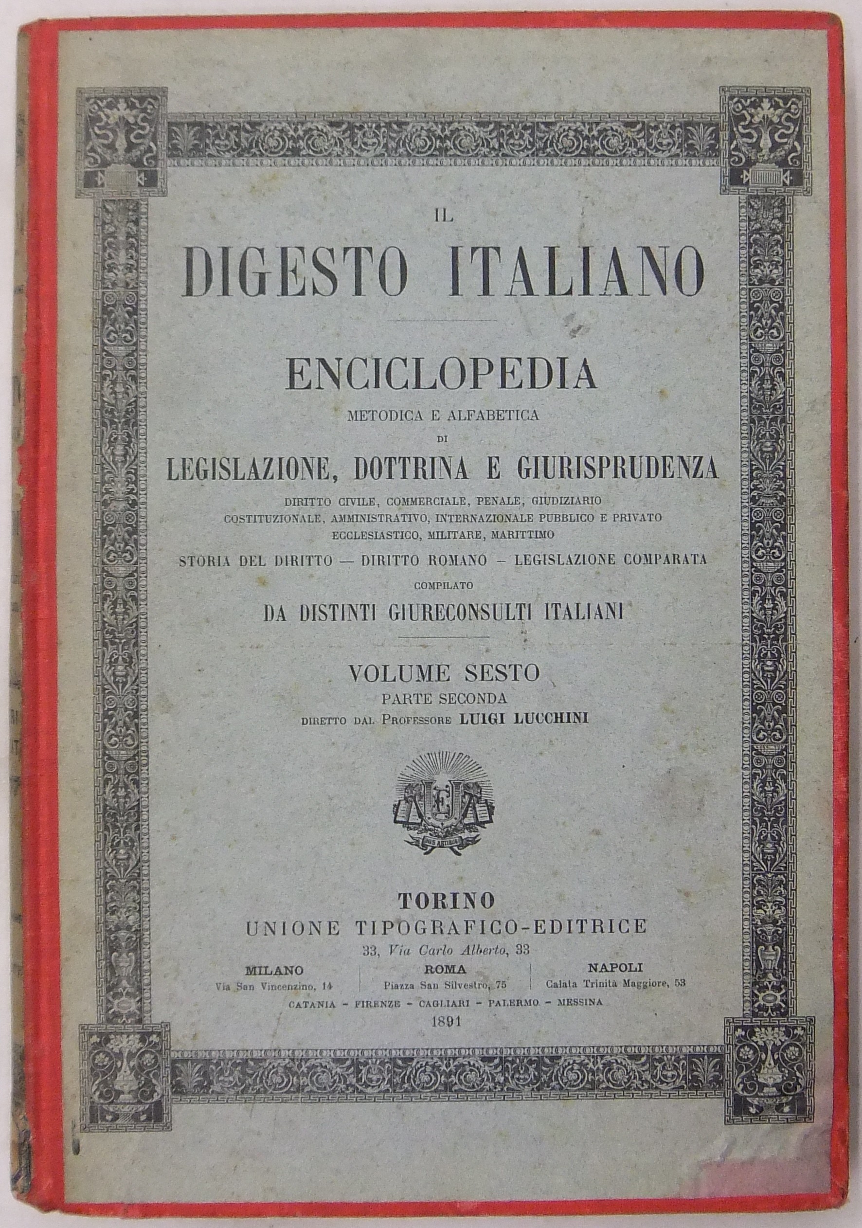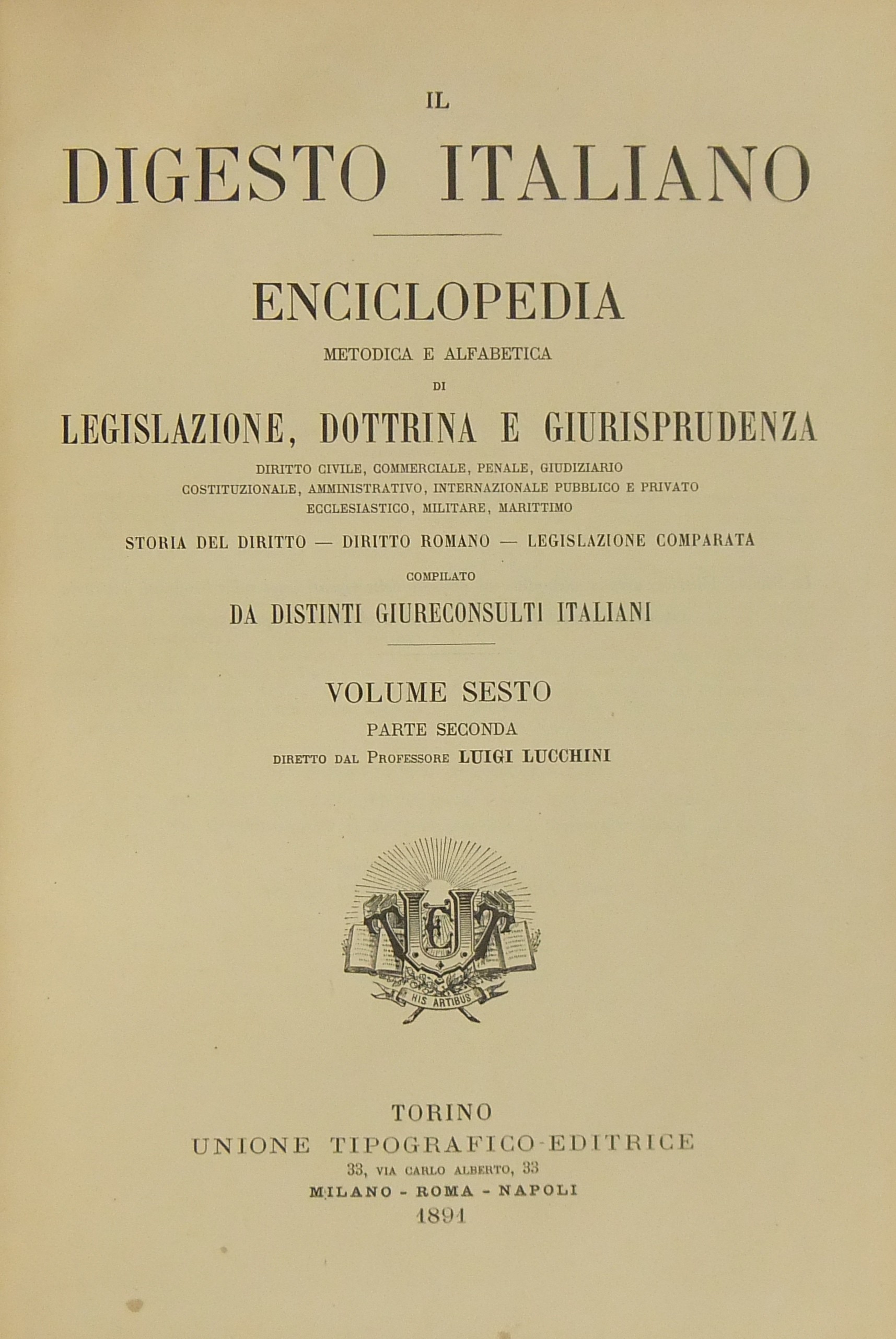 Il Digesto Italiano. Enciclopedia metodica e alfabetica di legislazione dottrina e giurisprudenza compilata da distinti giureconsulti italiani sotto la direzione di Luigi Lucchini. Vol. VI - parte seconda - Carabinieri-Caso fortuito