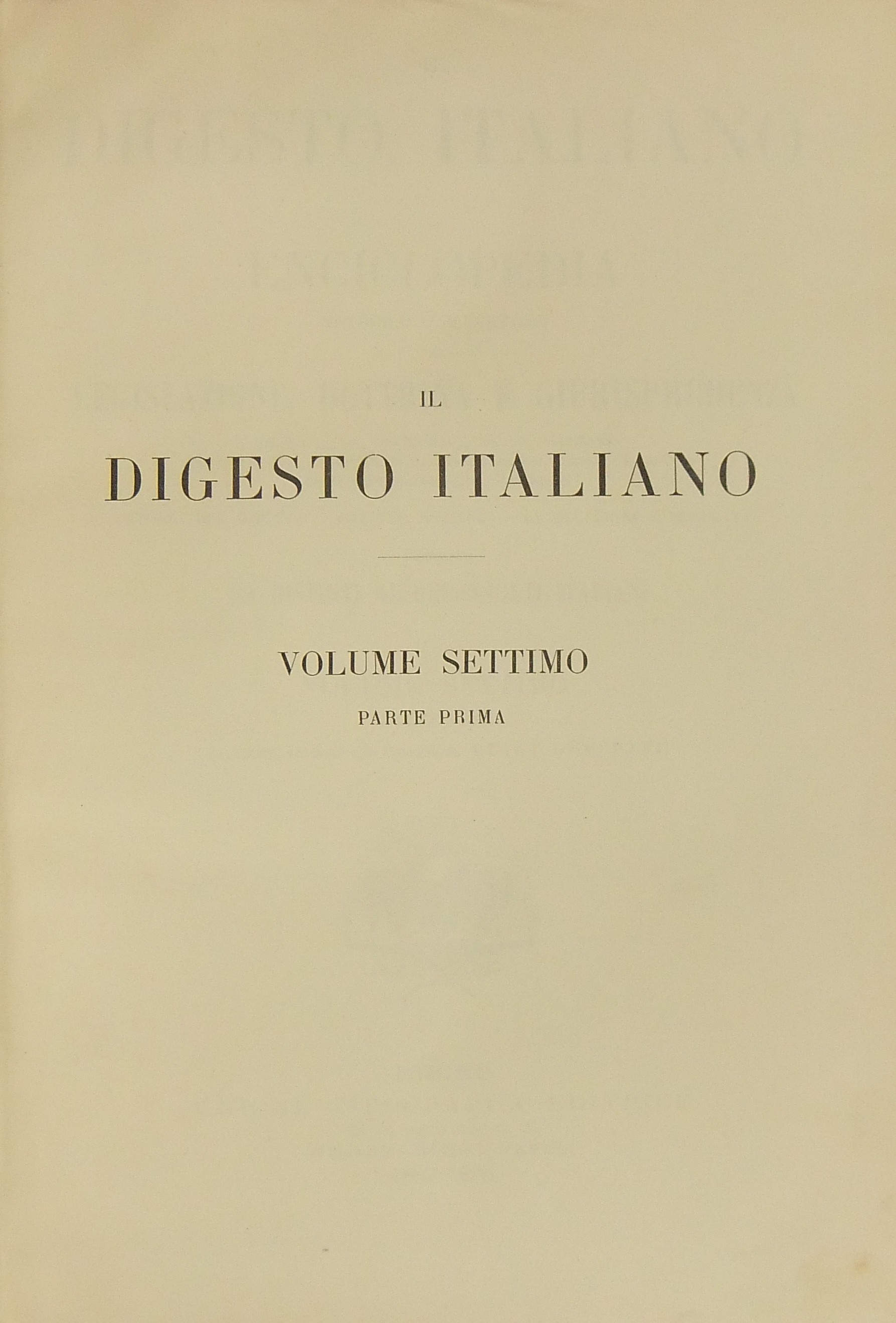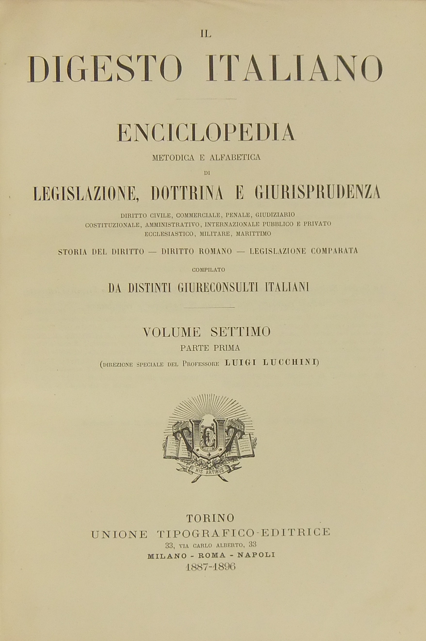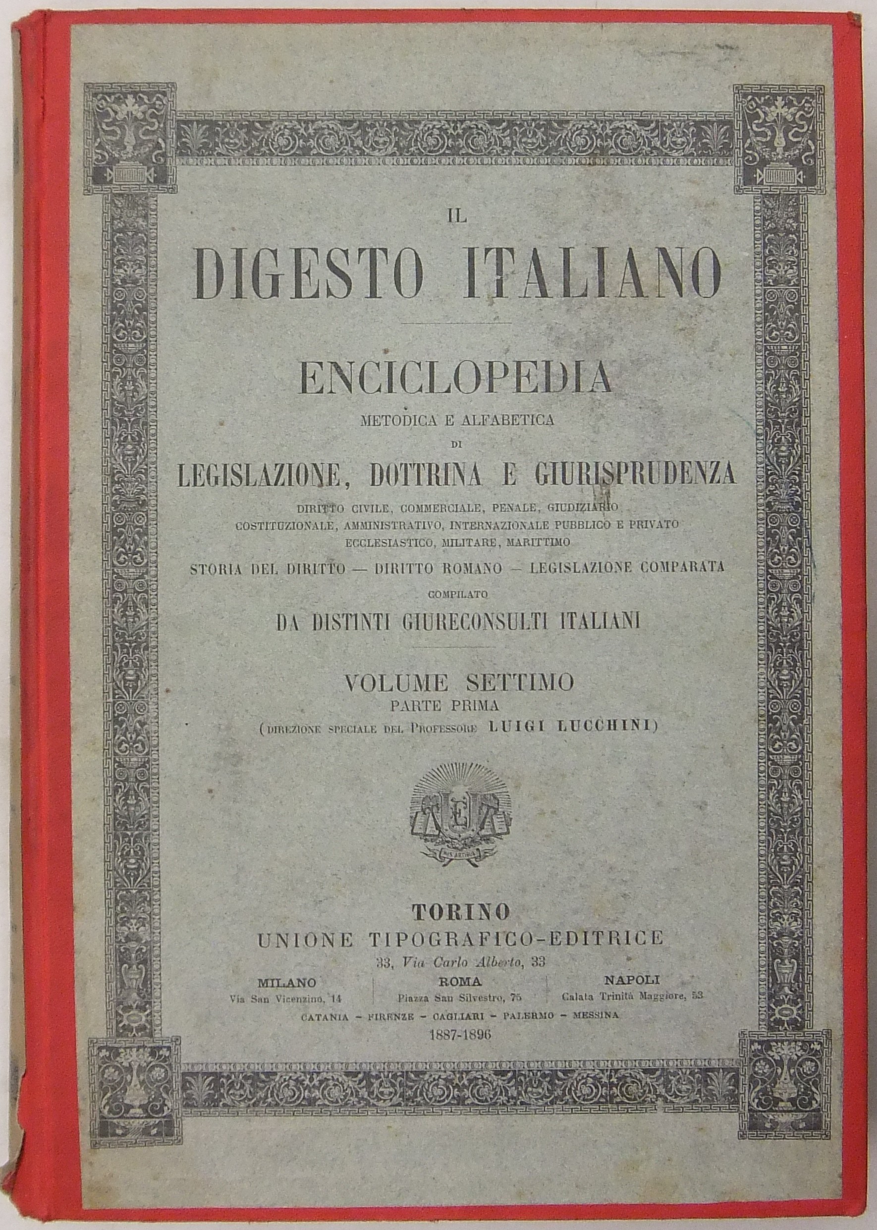 Il Digesto Italiano. Enciclopedia metodica e alfabetica di legislazione dottrina e giurisprudenza compilata da distinti giureconsulti italiani sotto la direzione di Luigi Lucchini. Vol. VII - parte prima - Cassa-Chiusa