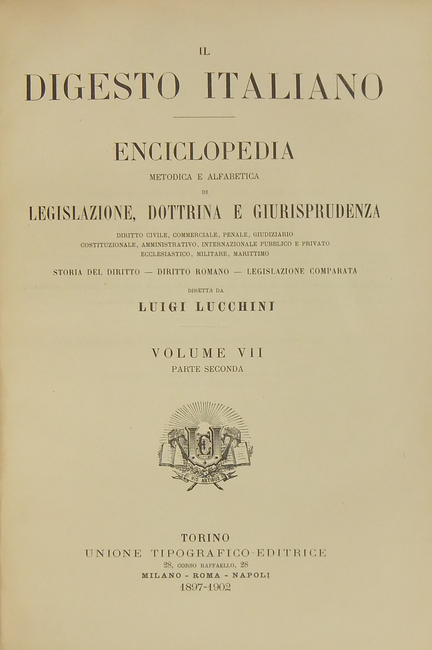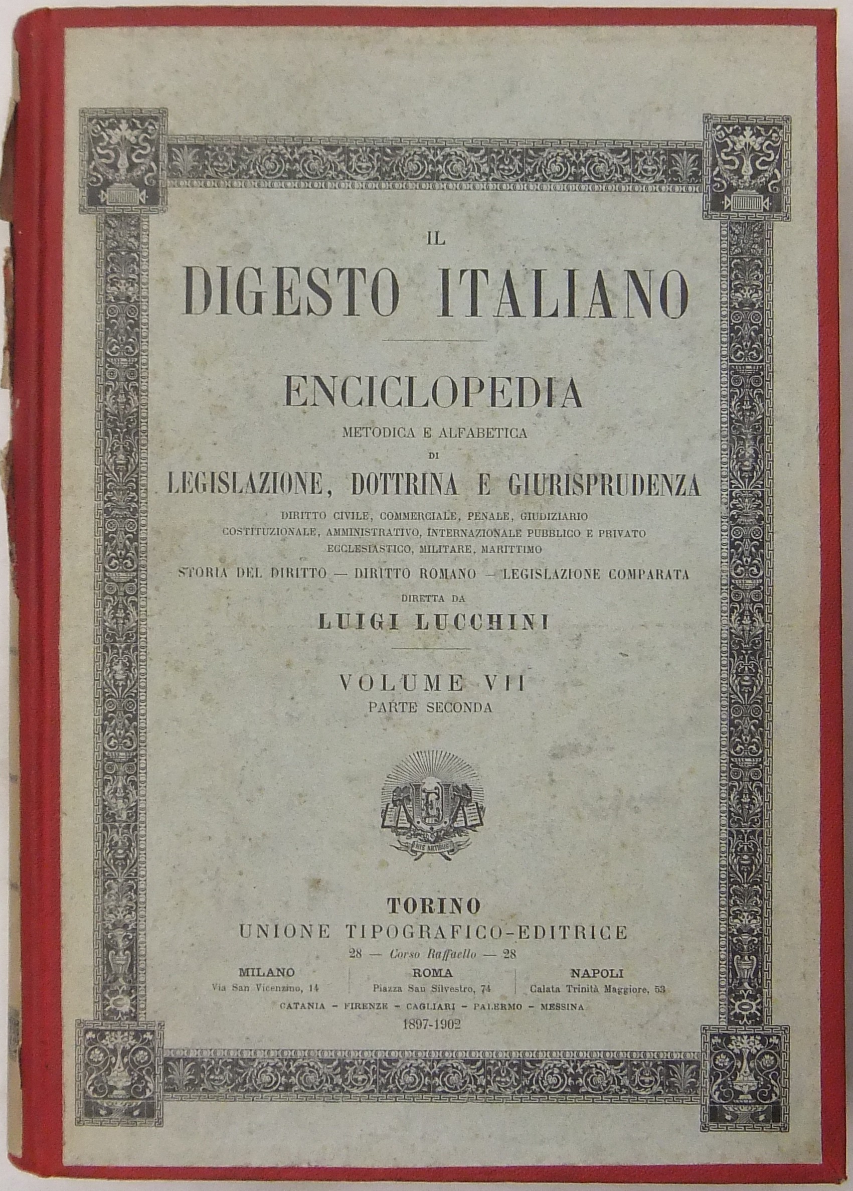 Il Digesto Italiano. Enciclopedia metodica e alfabetica di legislazione dottrina e giurisprudenza compilata da distinti giureconsulti italiani sotto la direzione di Luigi Lucchini. Vol. VII - parte seconda - Cicoria-Commissionario