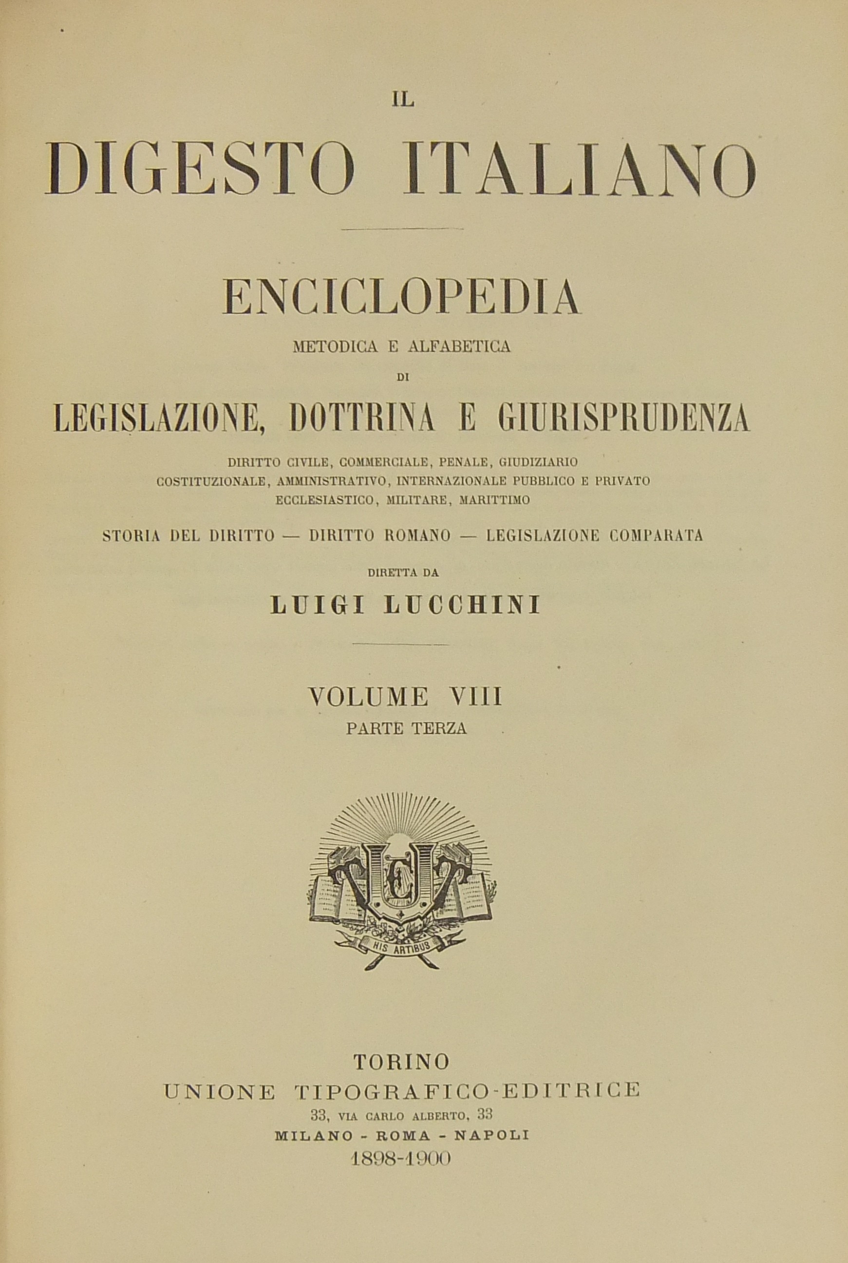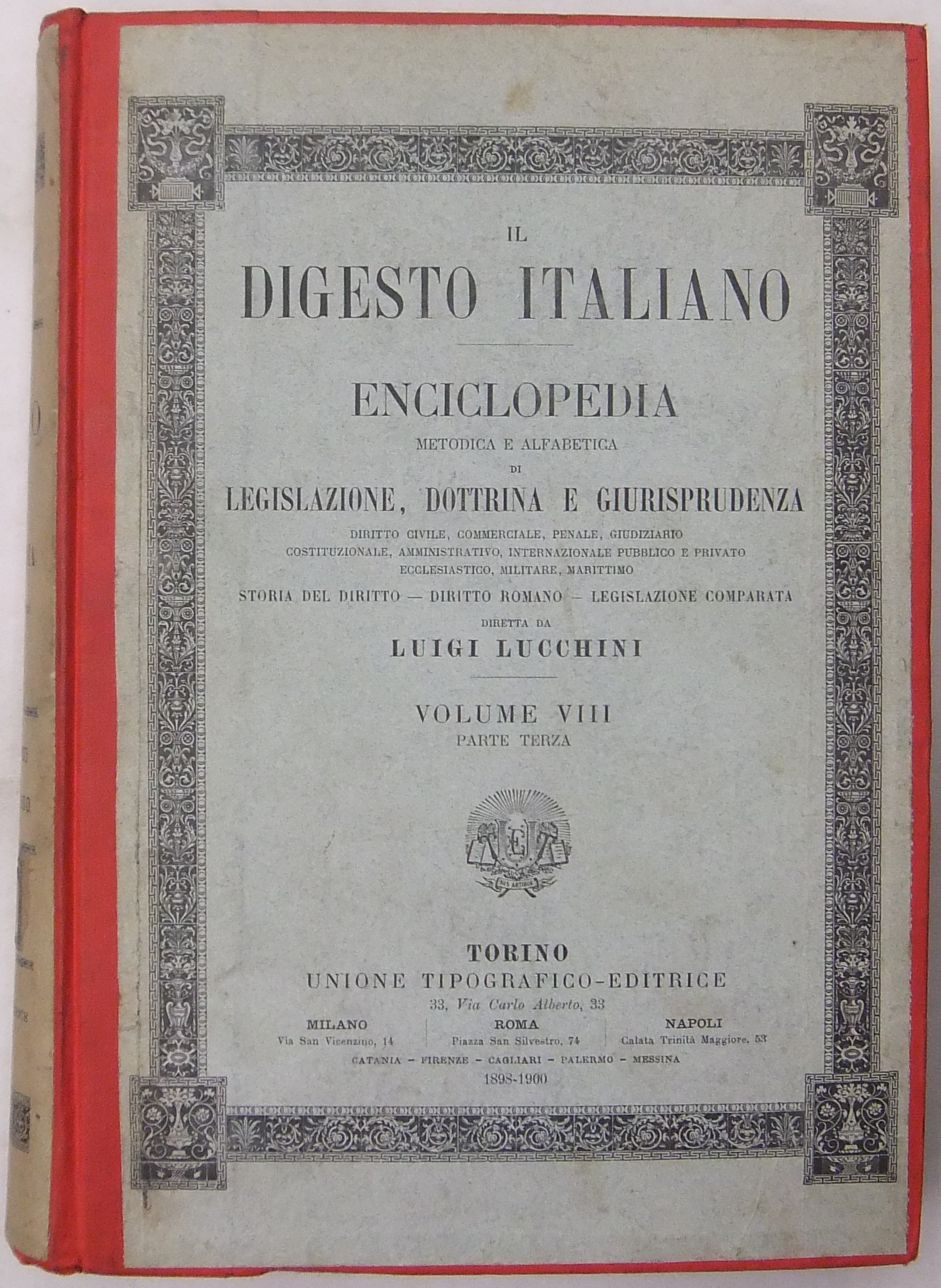 Il Digesto Italiano. Enciclopedia metodica e alfabetica di legislazione dottrina e giurisprudenza compilata da distinti giureconsulti italiani sotto la direzione di Luigi Lucchini. Vol. VIII - parte terza - Contrabbando-Corso forzoso